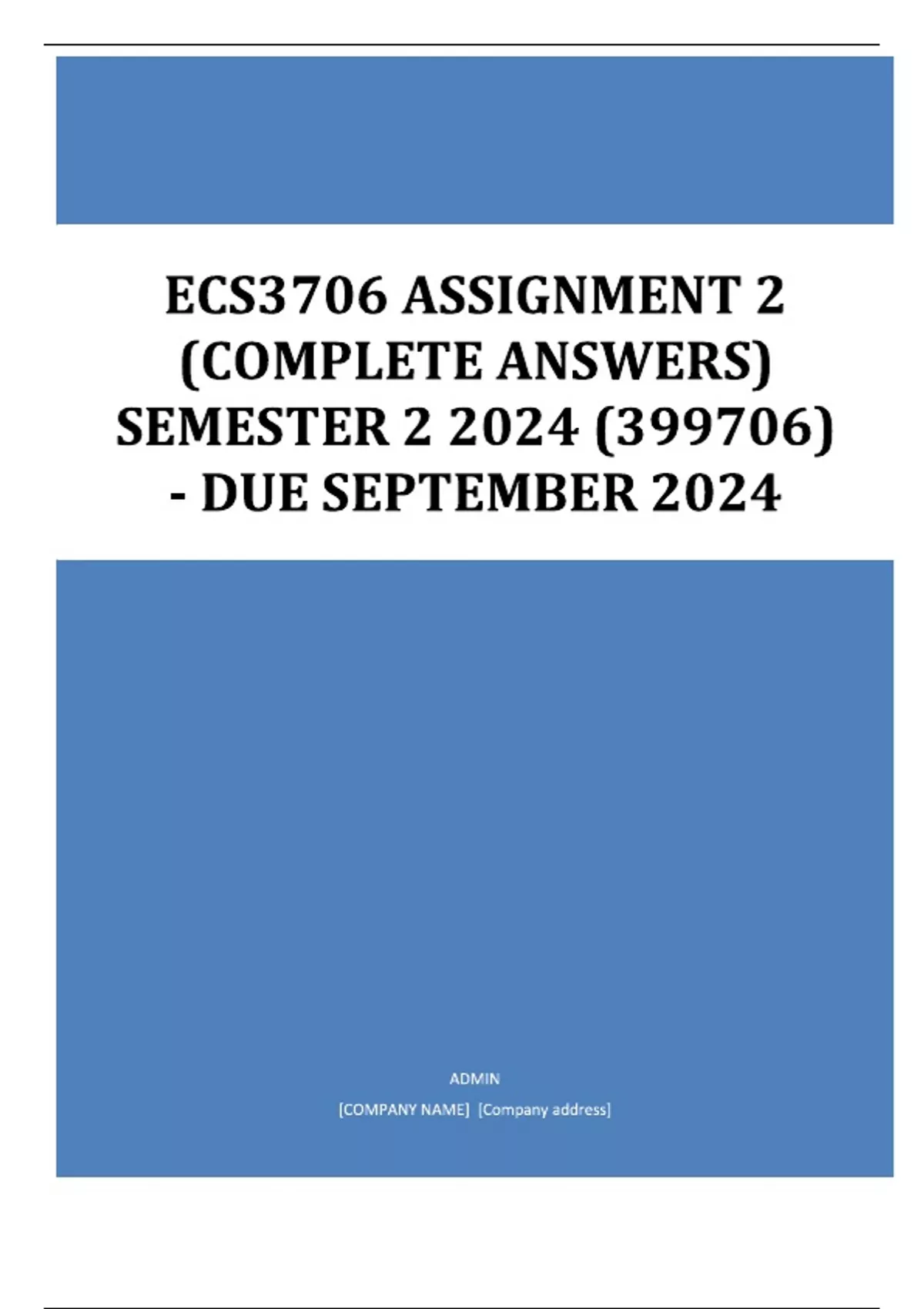 ECS3706 Assignment 2 (COMPLETE ANSWERS) Semester 2 2024 (399706) - DUE September 2024
