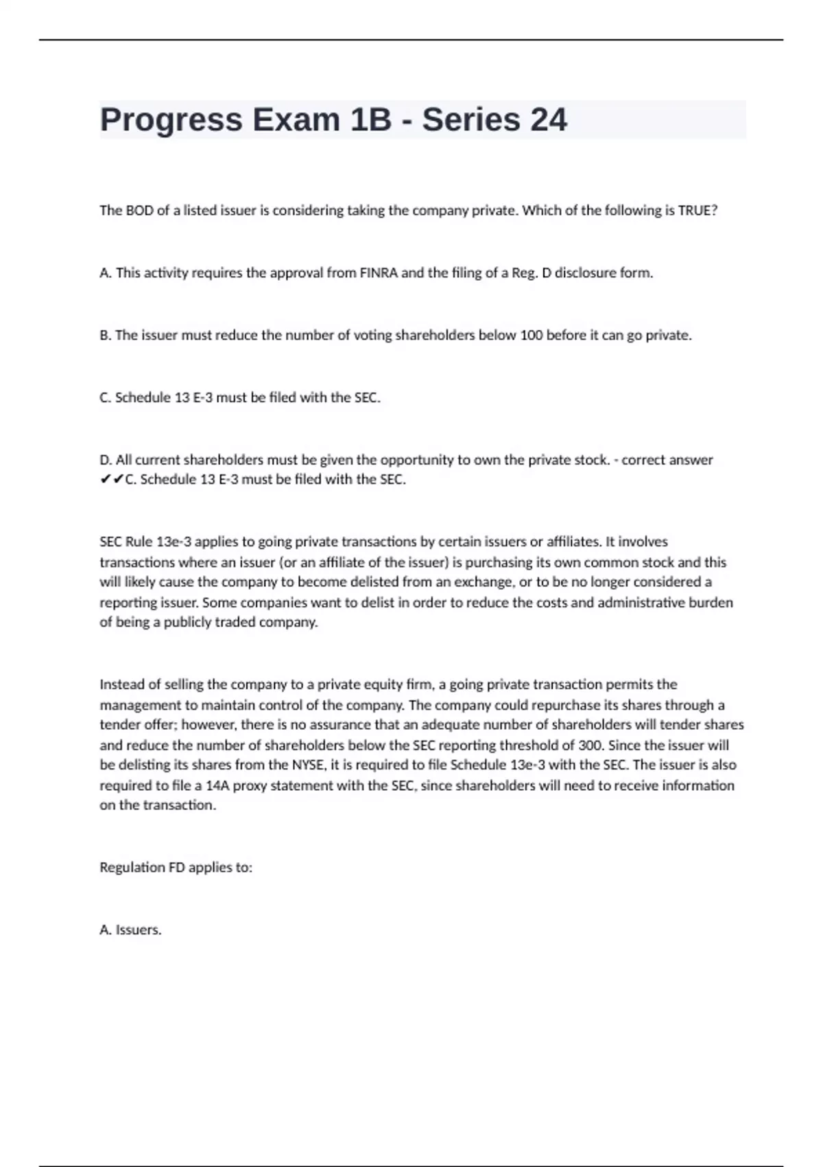 The BOD of a listed issuer is considering taking the company private. Which of the following is TRUE?