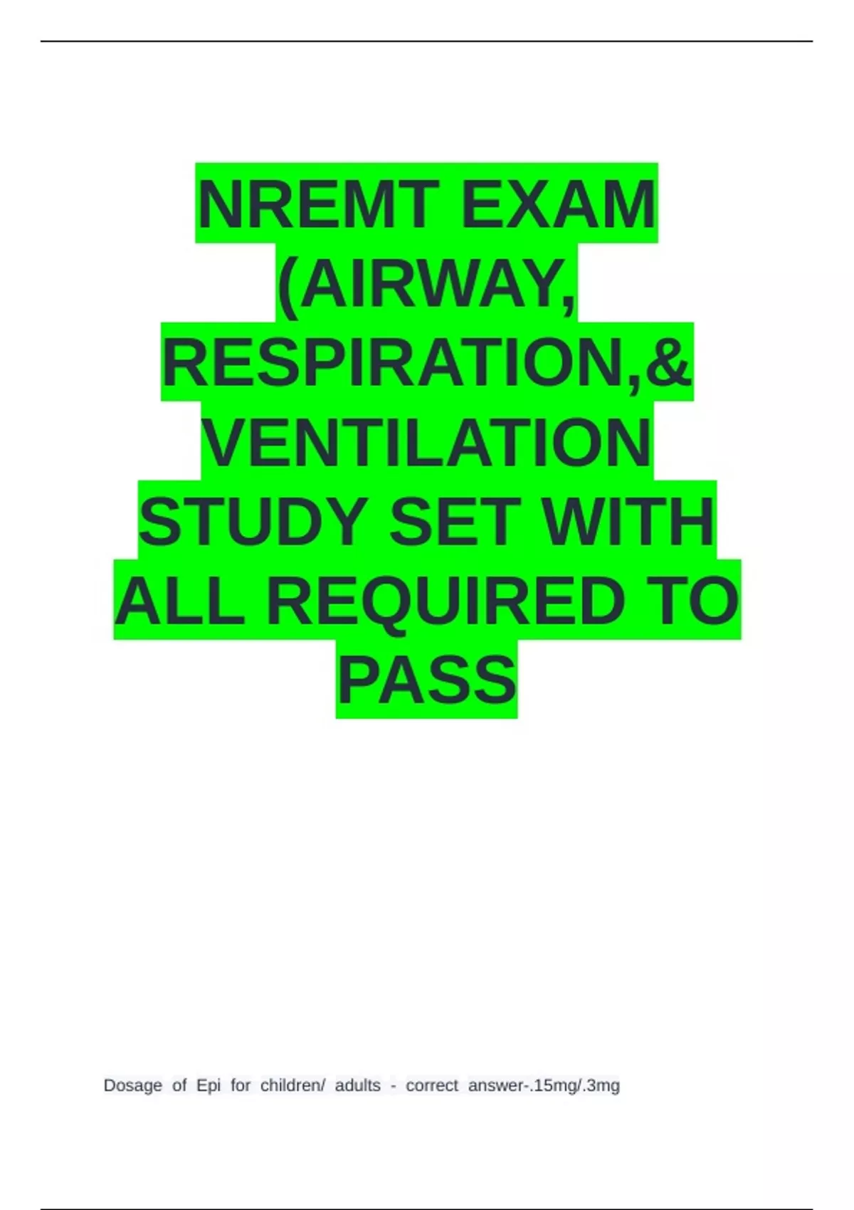 NREMT EXAM (AIRWAY, RESPIRATION,& VENTILATION STUDY SET WITH ALL REQUIRED TO