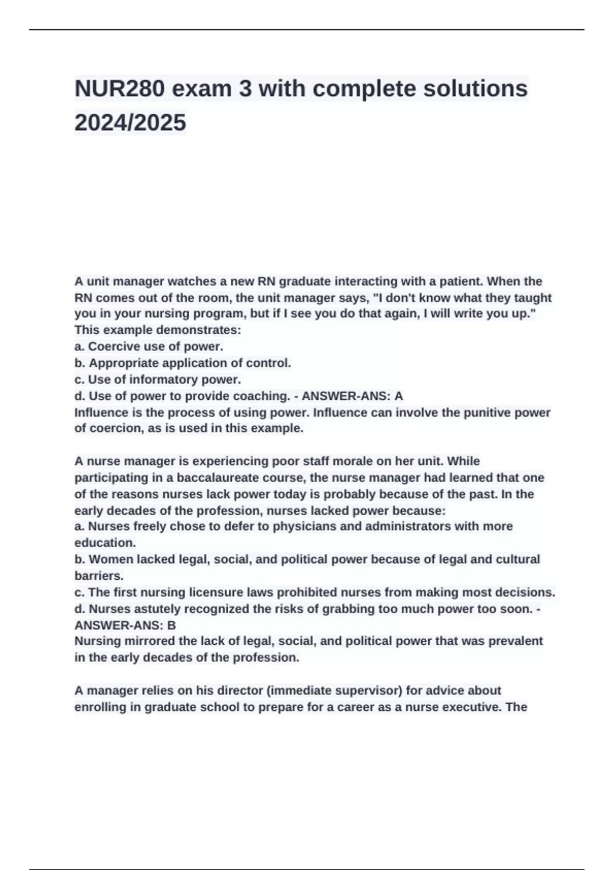 d. Use of power to provide coaching. - ANSWER-ANS: A
