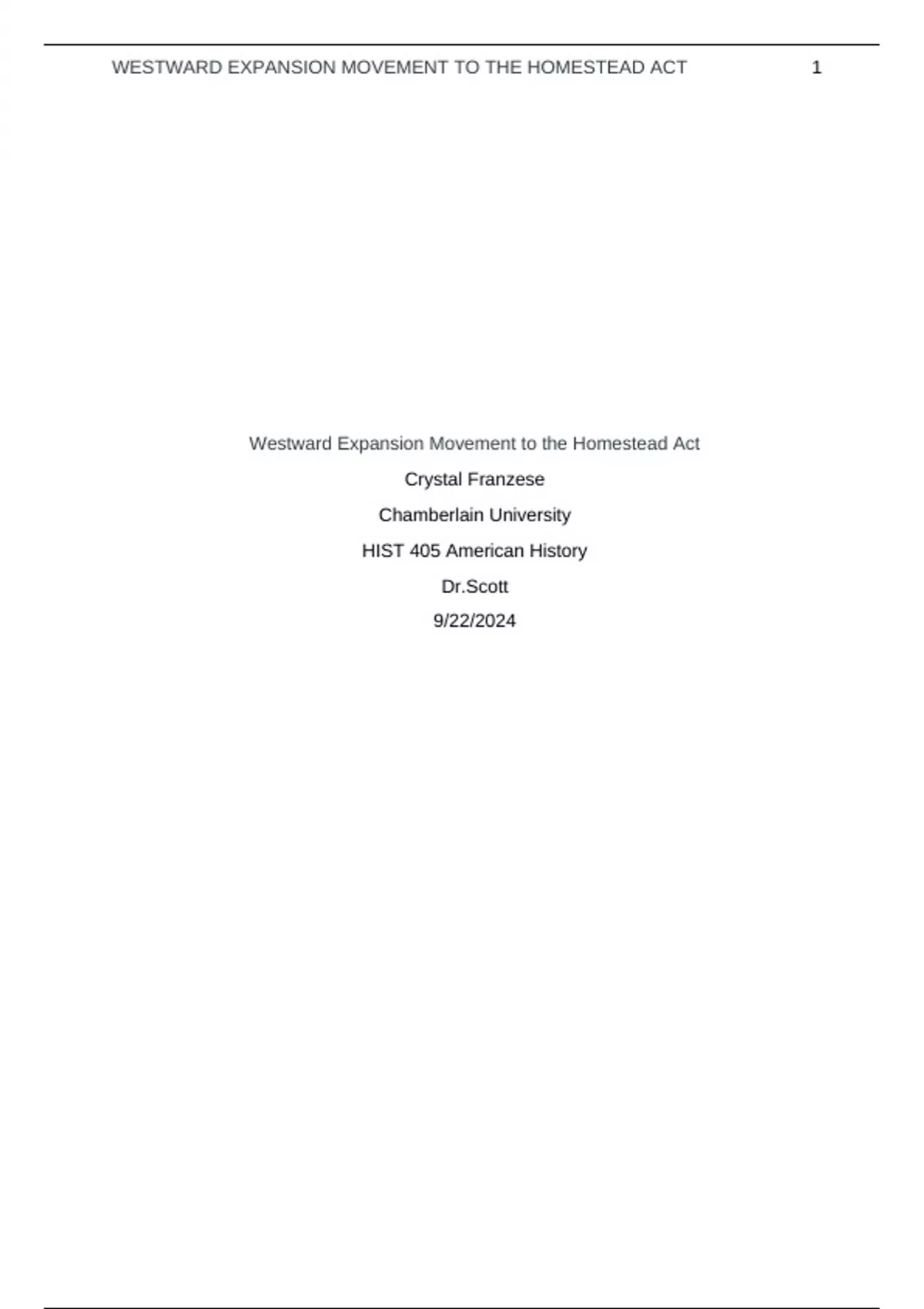 WESTWARD EXPANSION MOVEMENT TO THE HOMESTEAD ACT 1