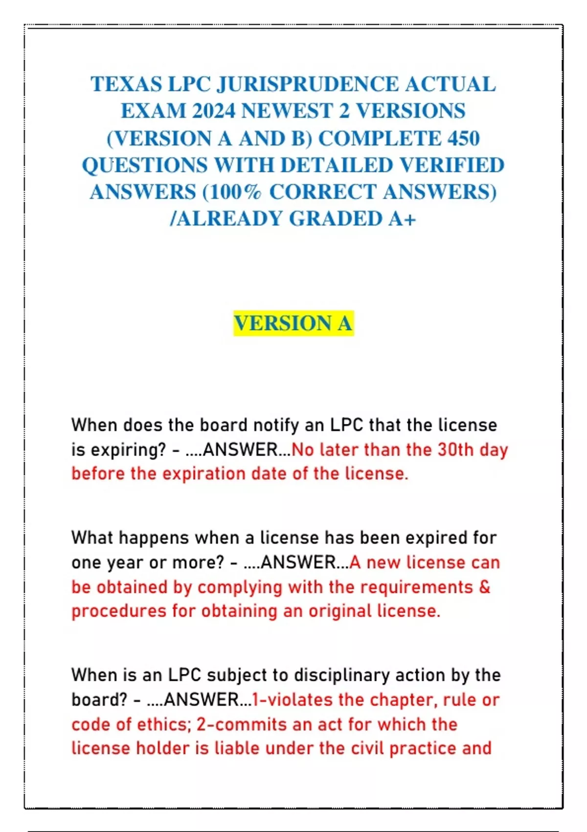 (VERSION A AND B) COMPLETE 450
