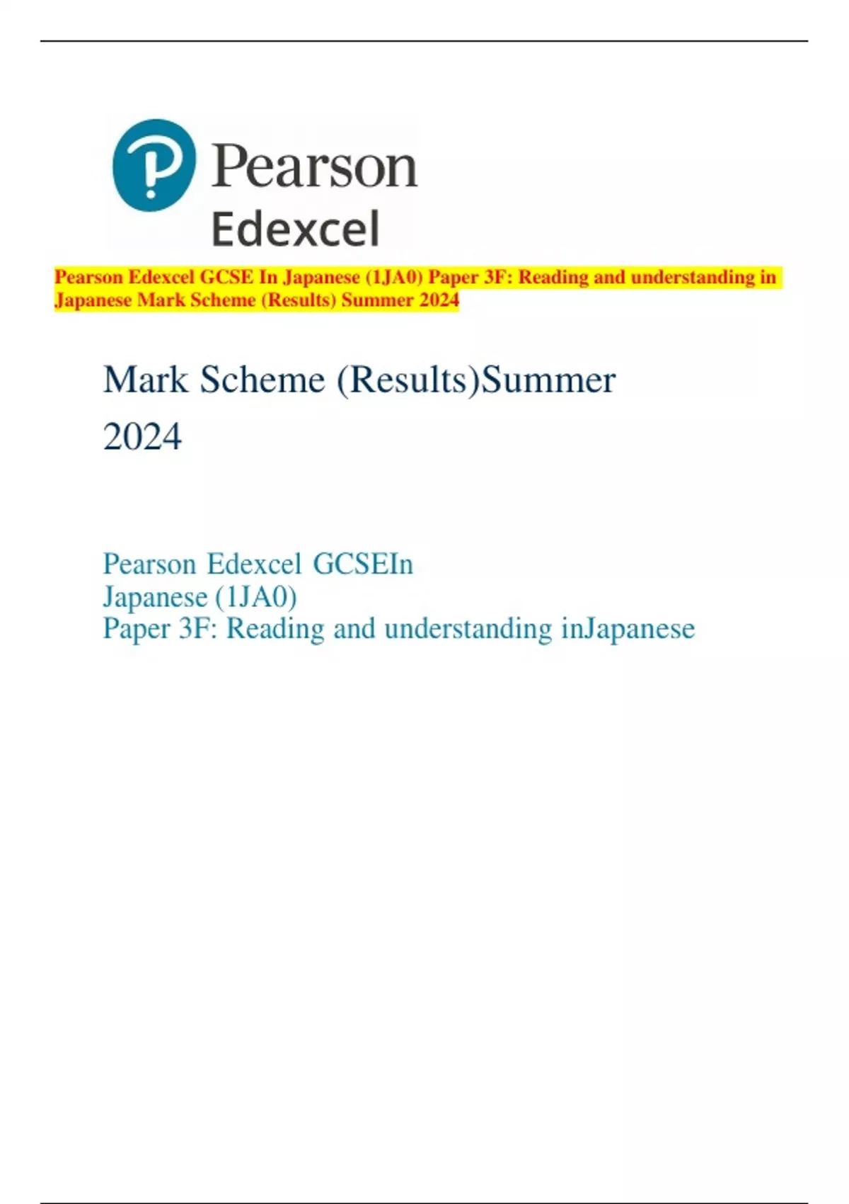 Pearson Edexcel GCSE In Japanese (1JA0) Paper 3F: Reading and understanding in