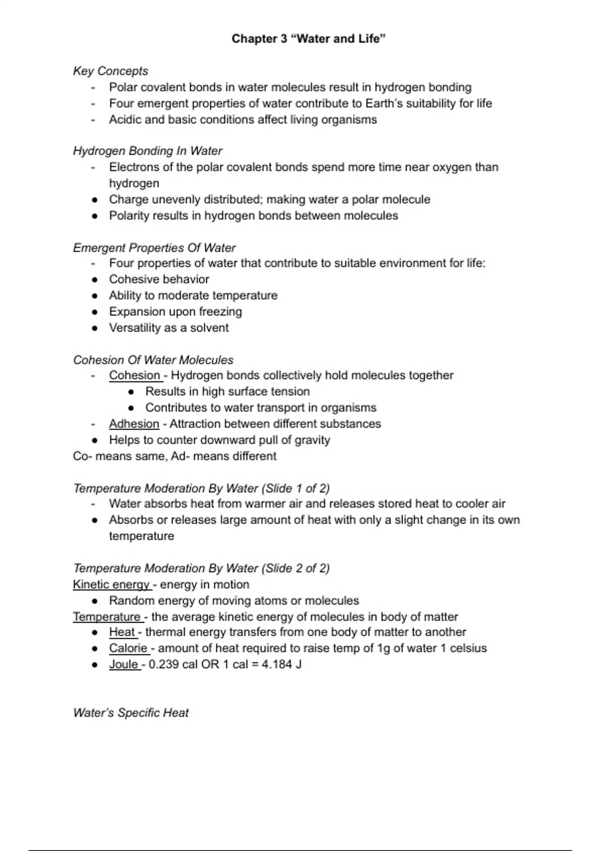 Chapter 3 “Water and Life”