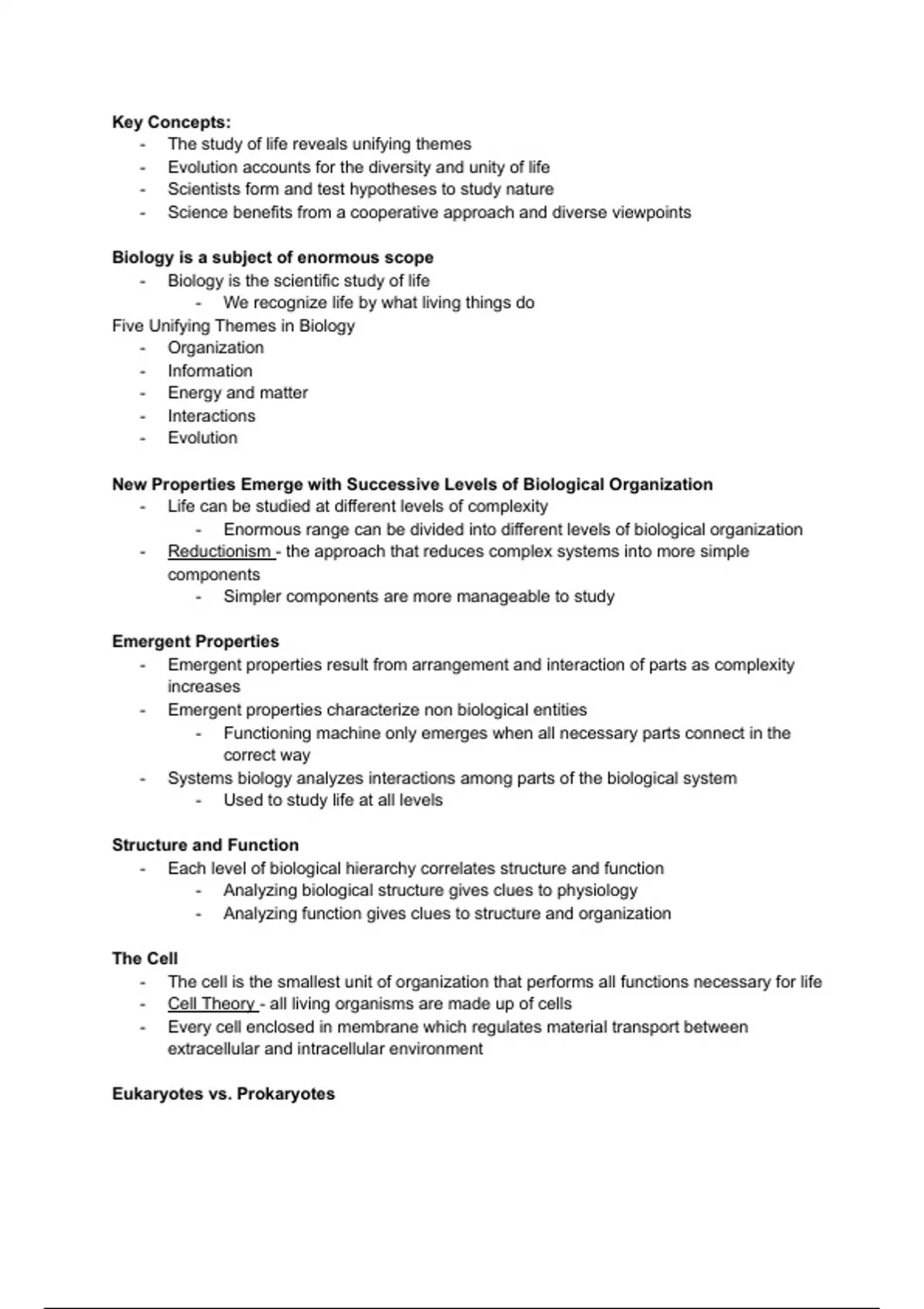- Emergent properties result from arrangement and interaction of parts as complexity