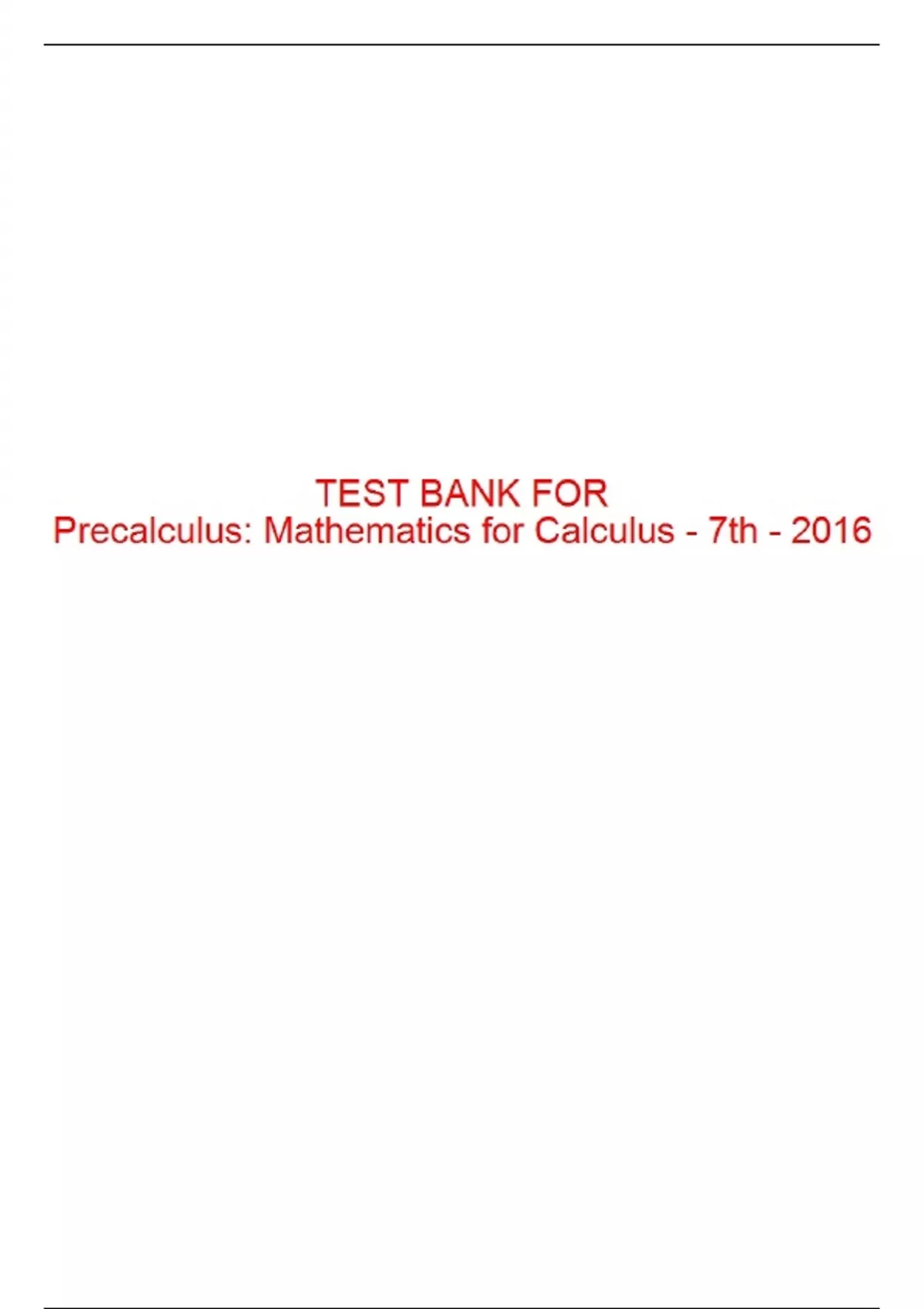 ,Test Bank For Precalculus: Mathematics for Calculus