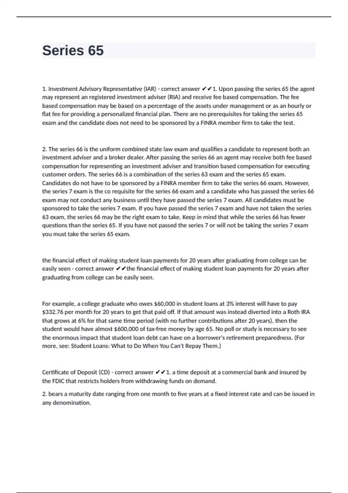 1. Investment Advisory Representative (IAR) - correct answer ✔✔1. Upon passing the series 65 the agent