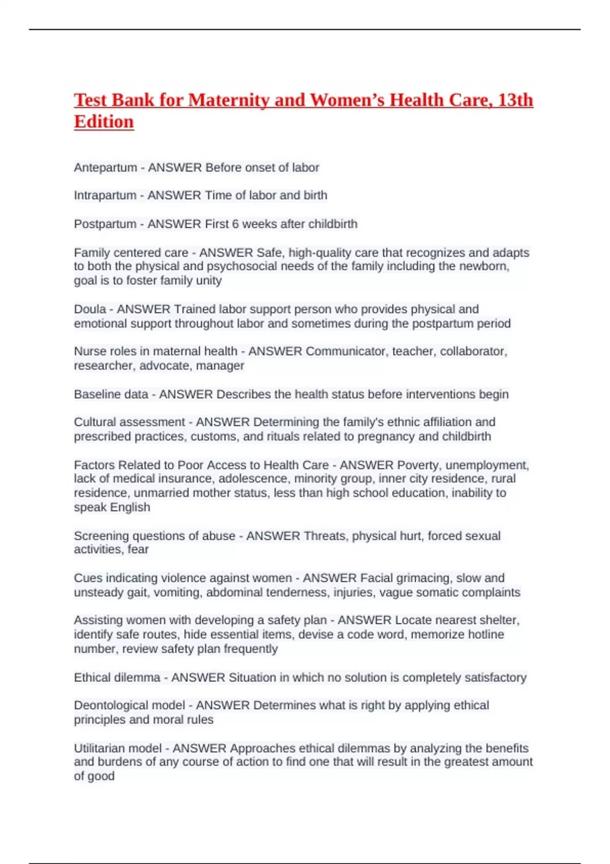 Postpartum - ANSWER First 6 weeks after childbirth