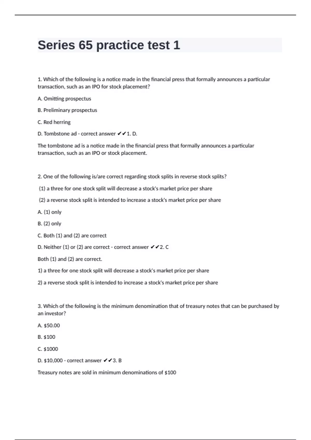 2. One of the following is/are correct regarding stock splits in reverse stock splits?