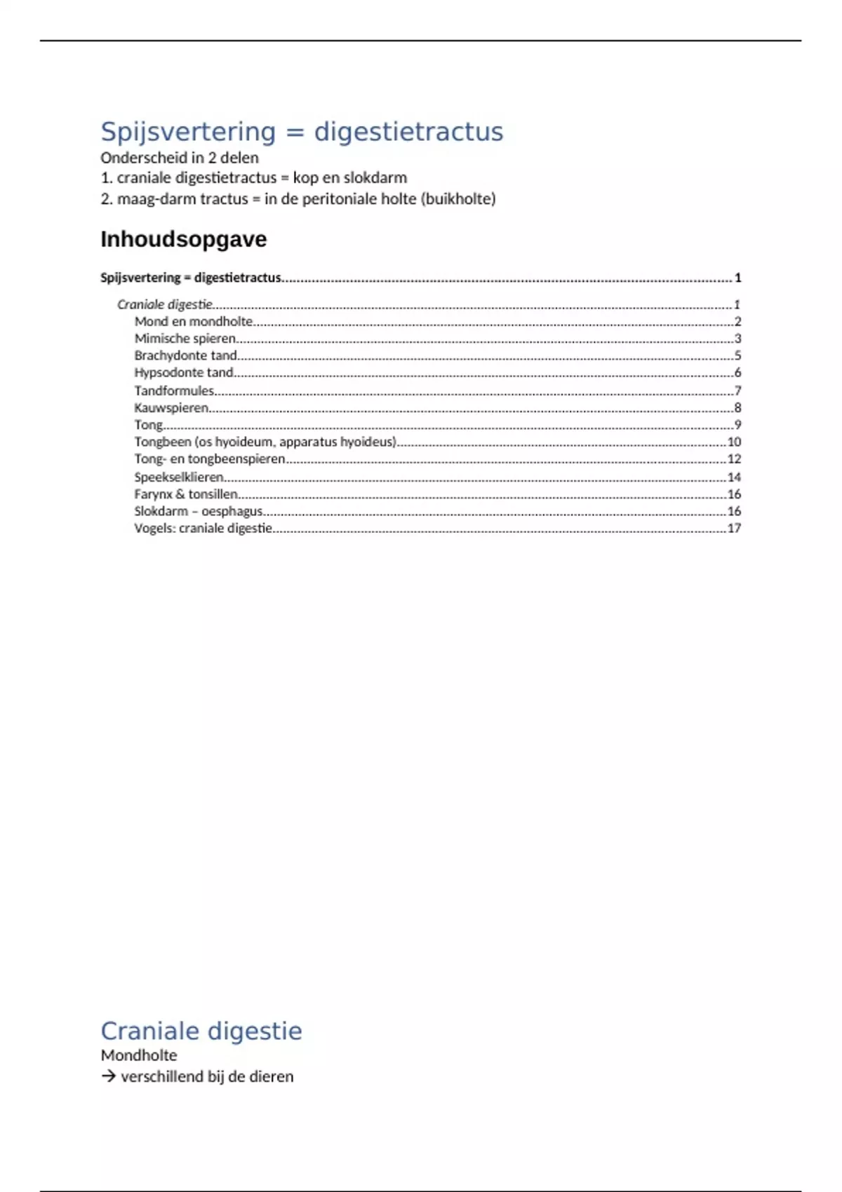 1. craniale digestietractus = kop en slokdarm
