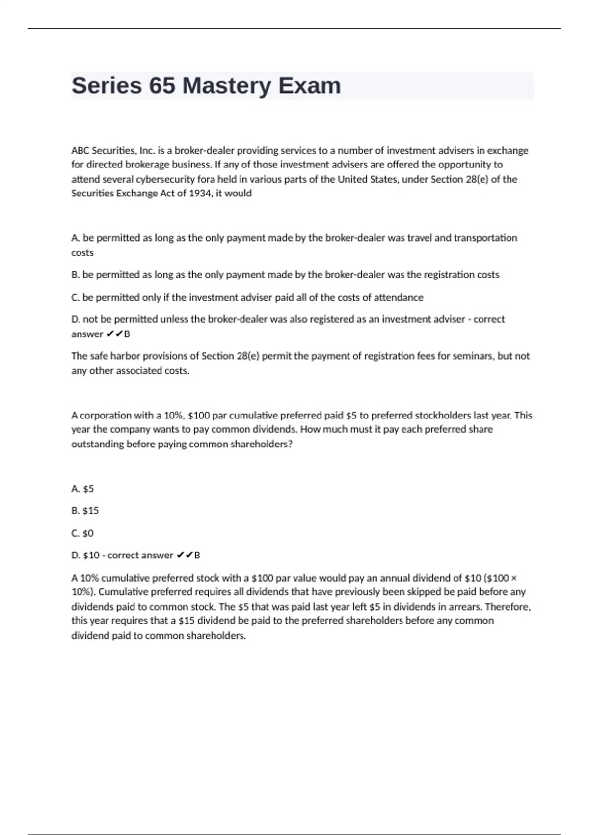 A 10% cumulative preferred stock with a $100 par value would pay an annual dividend of $10 ($100 ×