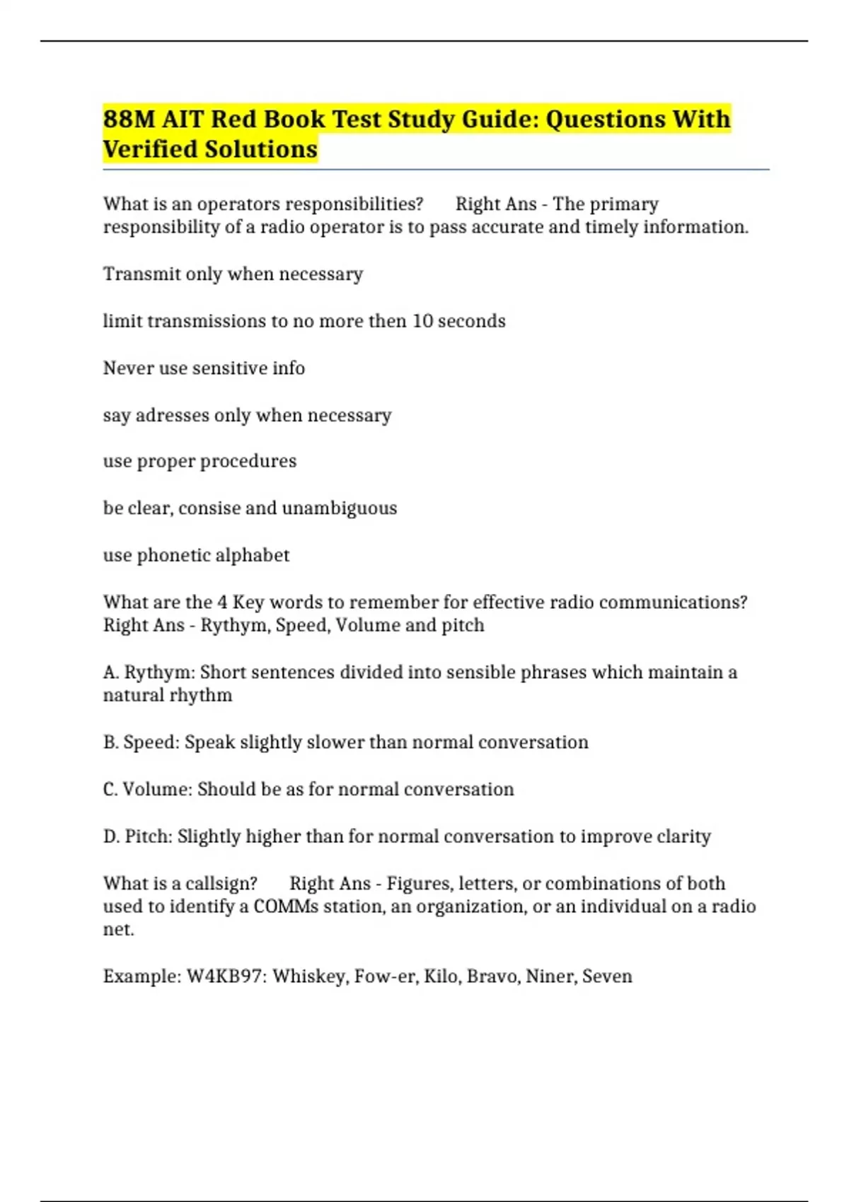 responsibility of a radio operator is to pass accurate and timely information.