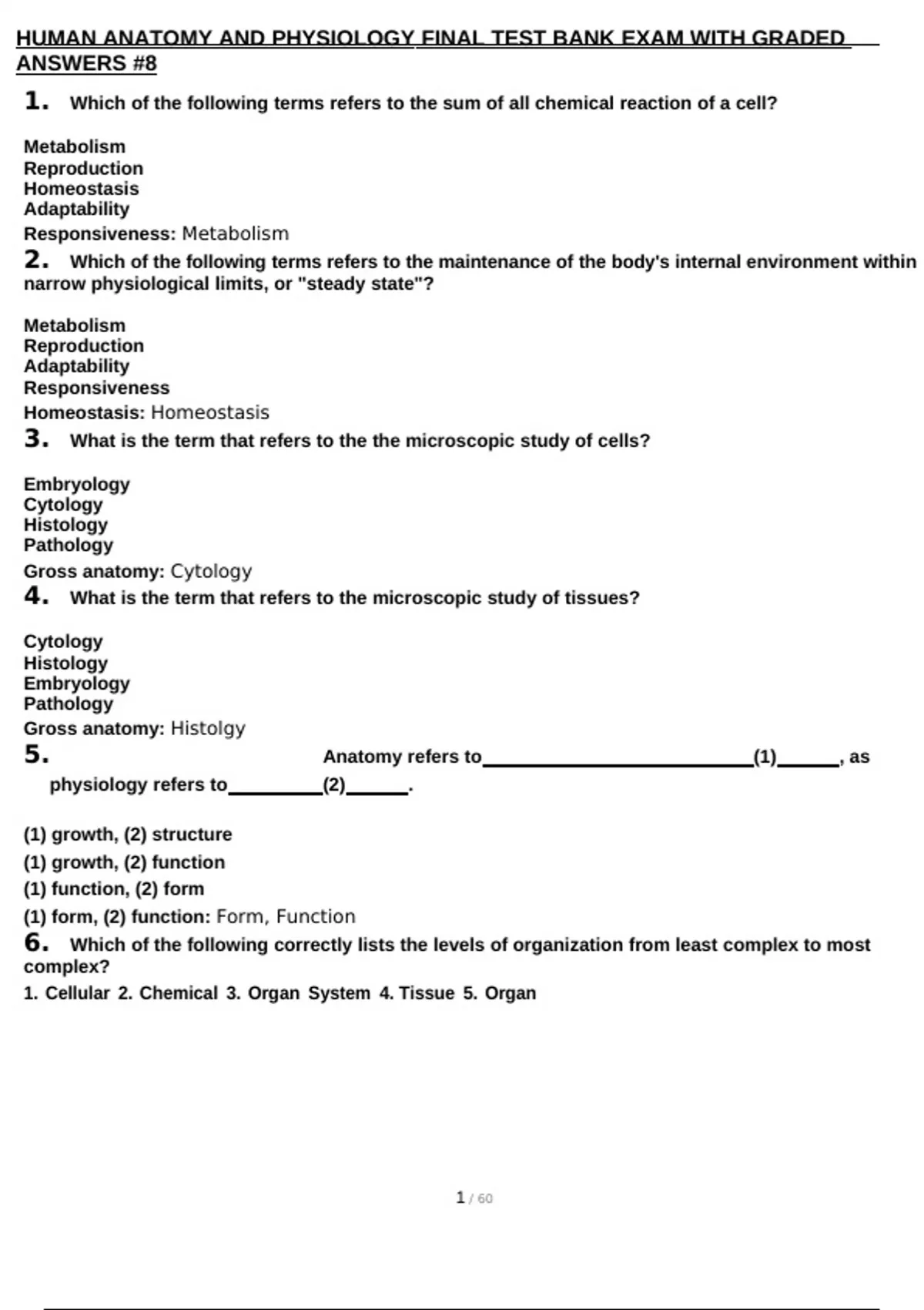 ,HUMAN ANATOMY AND PHYSIOLOGY FINAL TEST BANK EXAM WITH GRADED