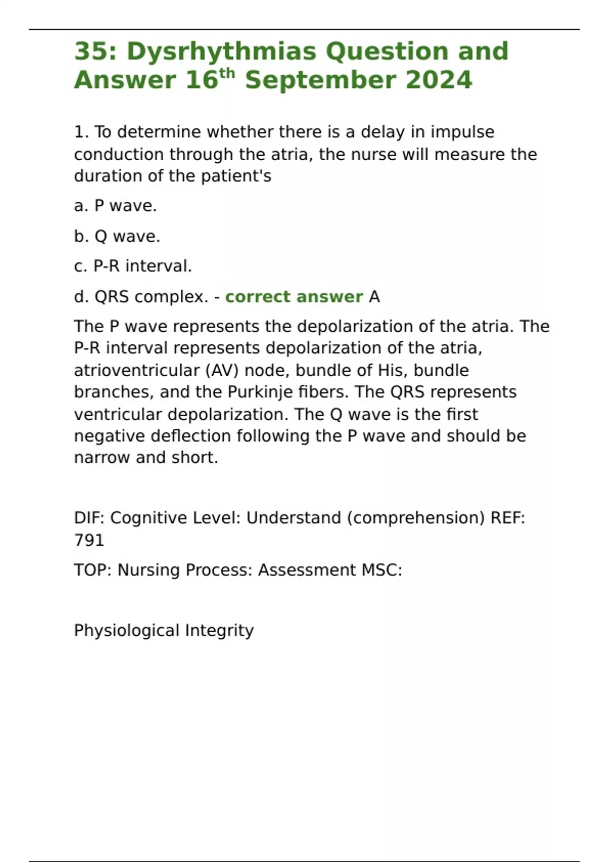35: Dysrhythmias Question and Answer 16th September 2024