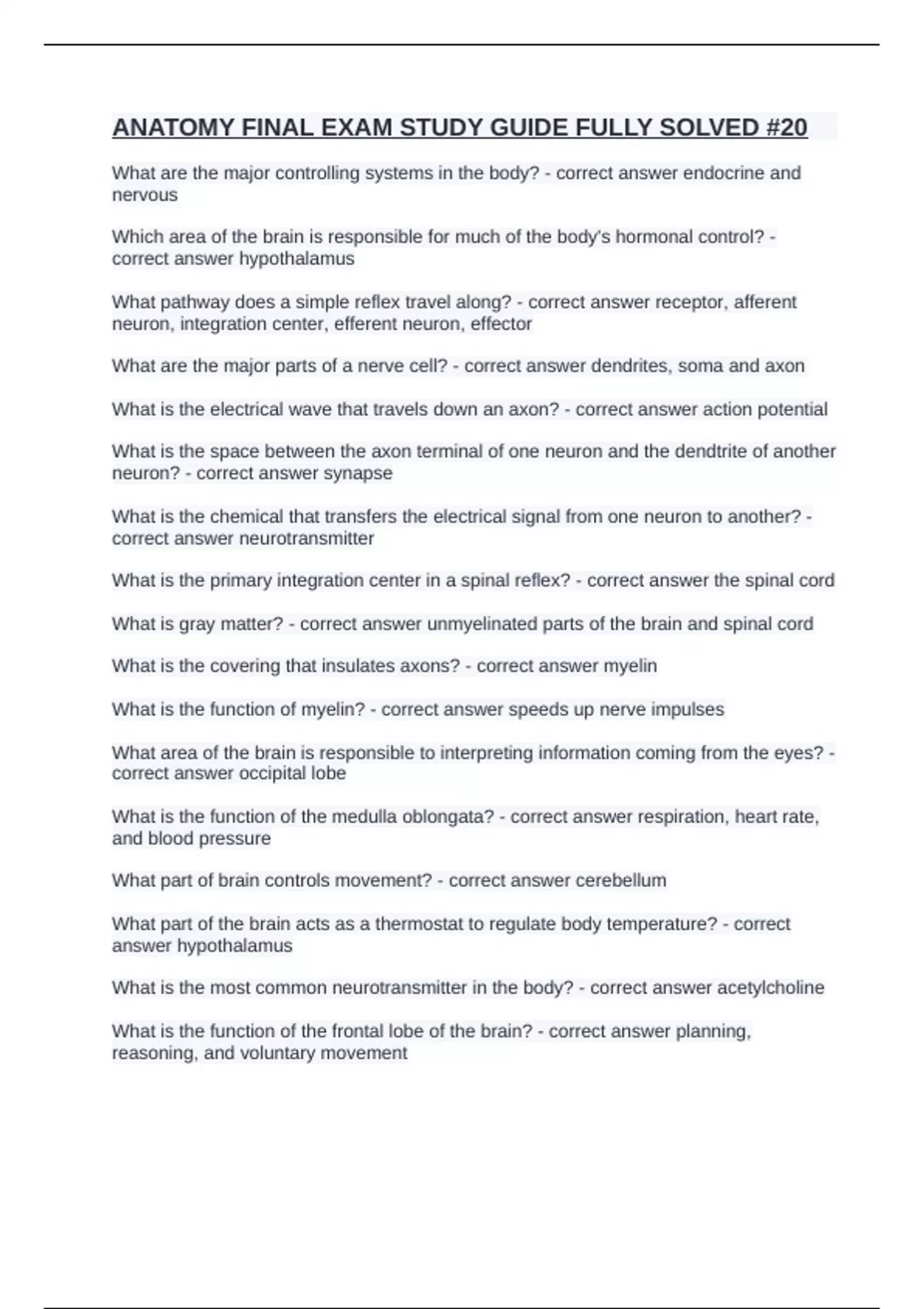 What is gray matter? - correct answer unmyelinated parts of the brain and spinal cord