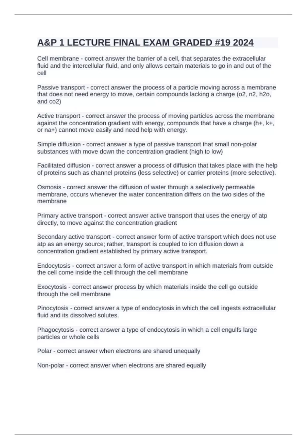 Cell membrane - correct answer the barrier of a cell, that separates the extracellular