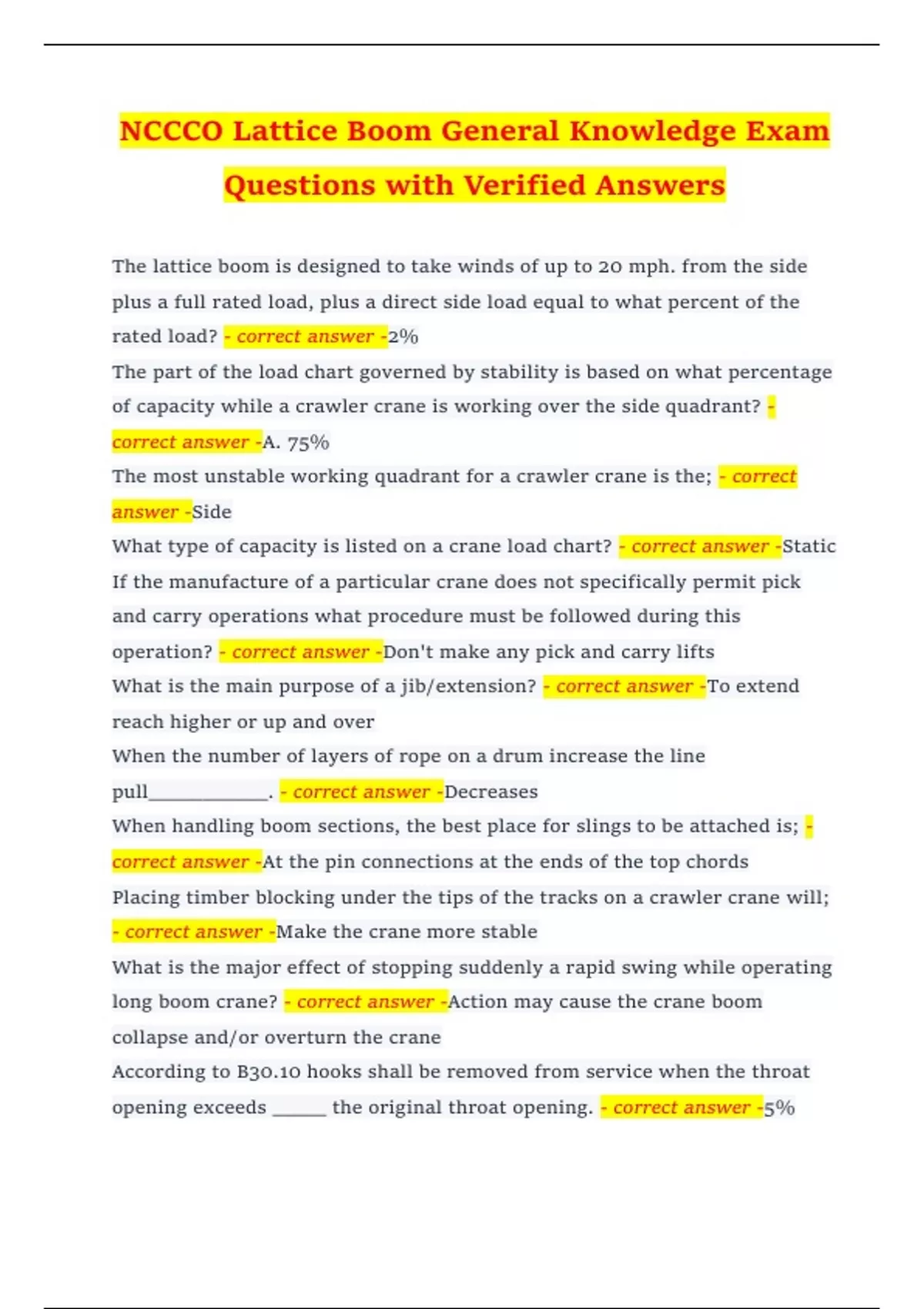What type of capacity is listed on a crane load chart? - correct answer -Static