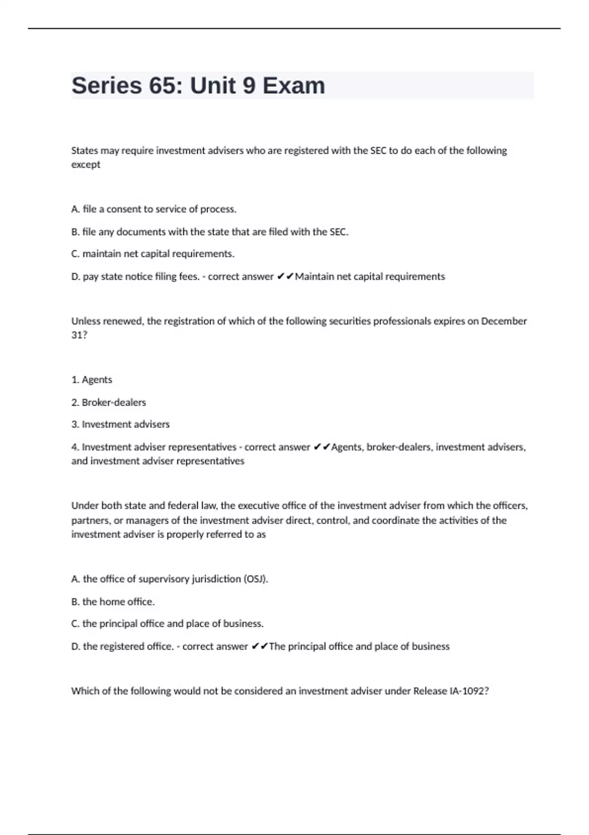 4. Investment adviser representatives - correct answer ✔✔Agents, broker-dealers, investment advisers,