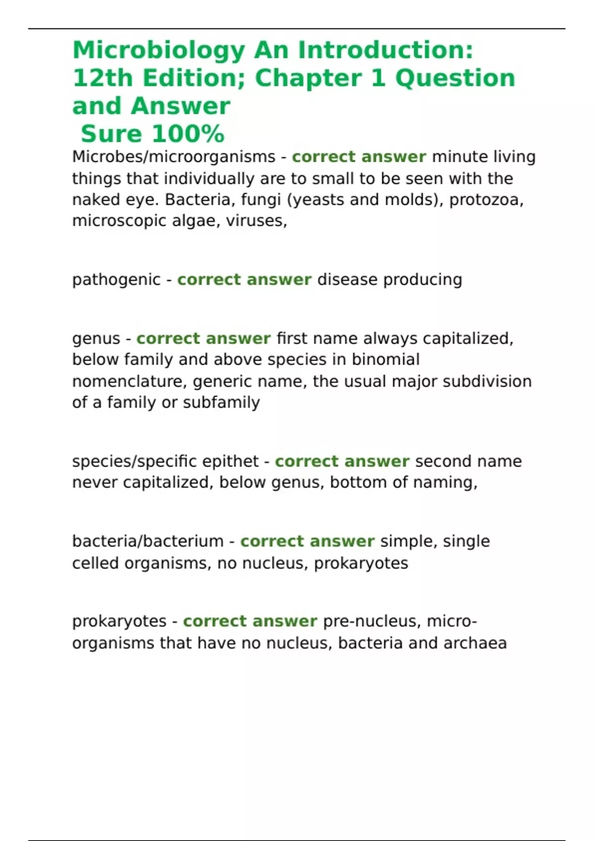 Microbiology An Introduction: 12th Edition; Chapter 1 Question and Answer Sure 100%