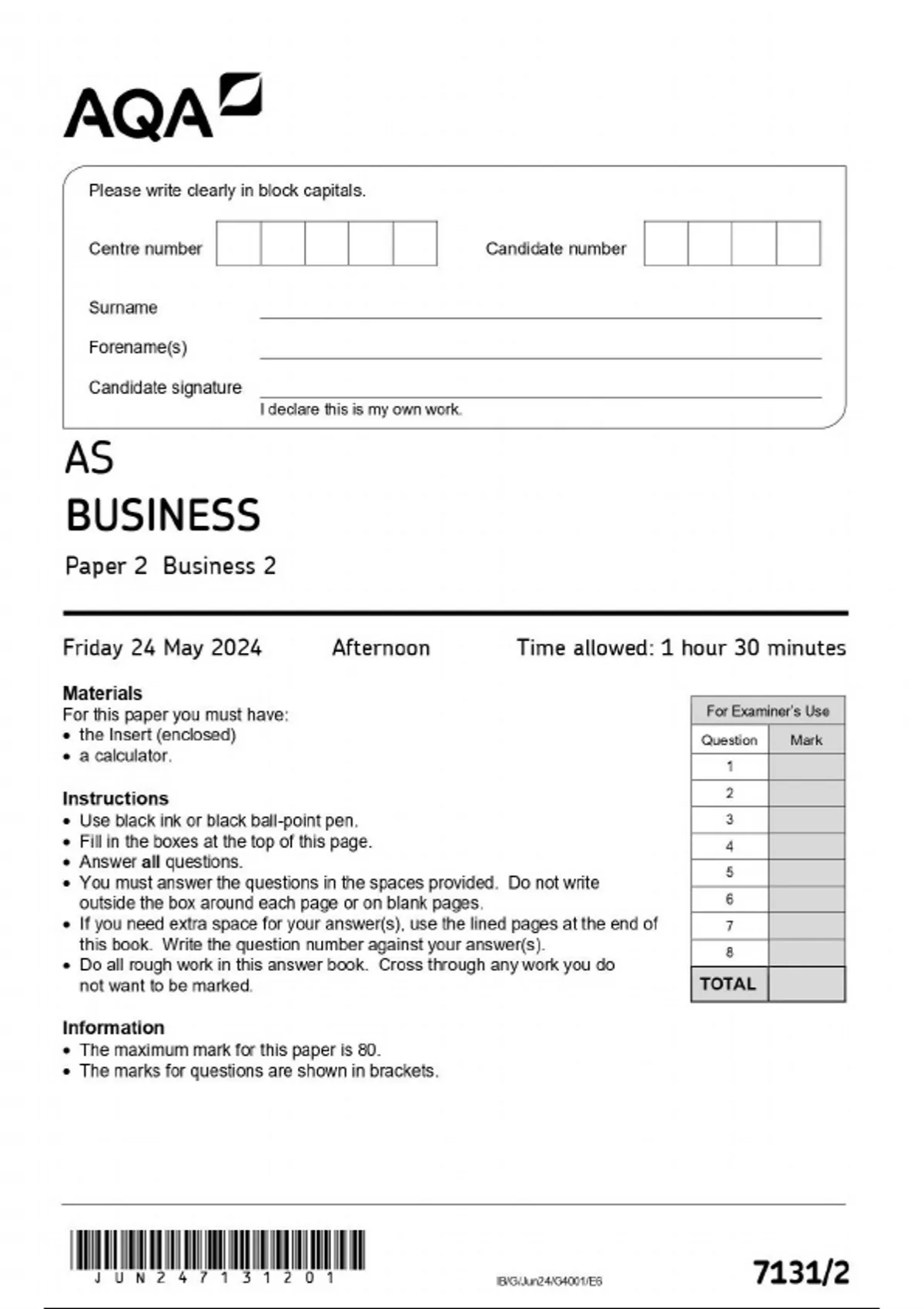 AQA AS BUSINESS Paper 2 Business Question Paper 2024 Version: 1.0 Final