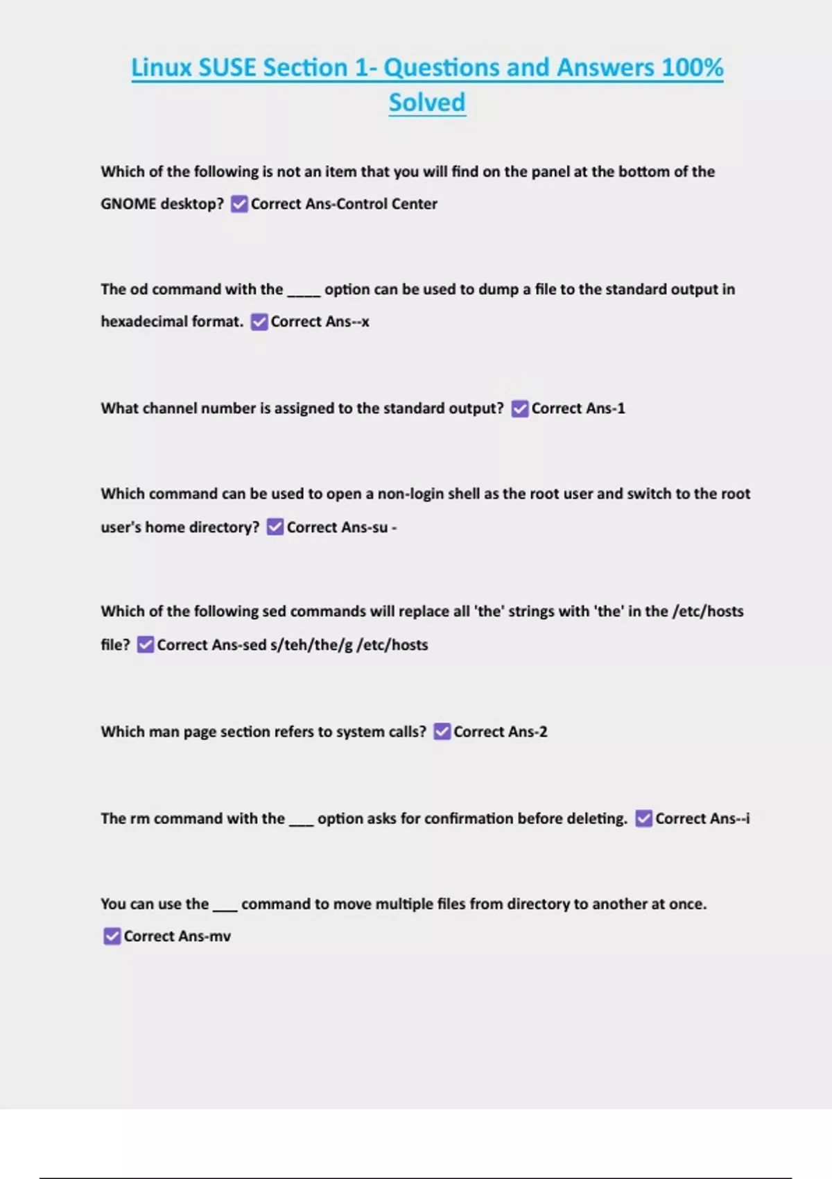 Linux SUSE Section 1- Questions and Answers 100% Solved