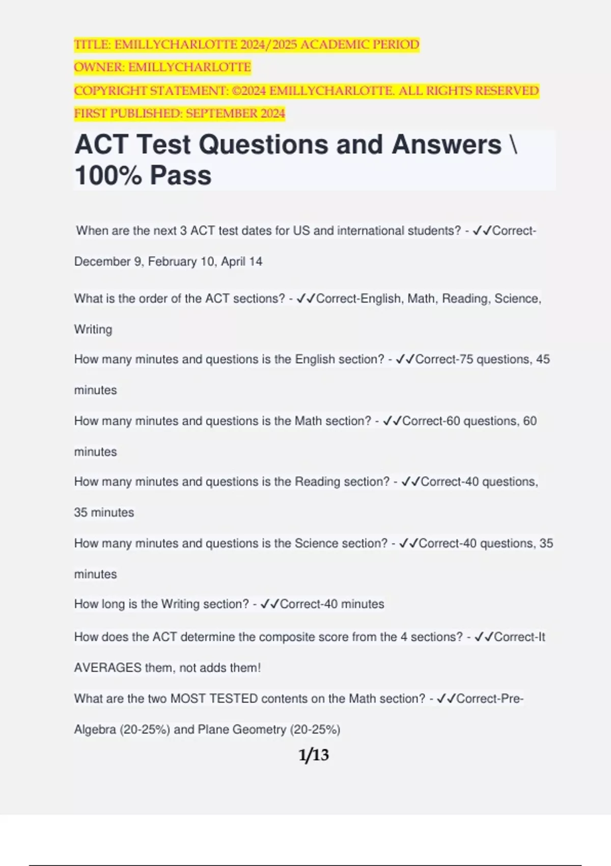 ACT Test Questions and Answers \