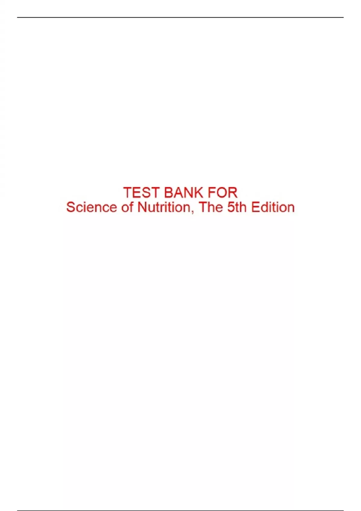 , TestBank For Science of Nutrition, The 5th Edition