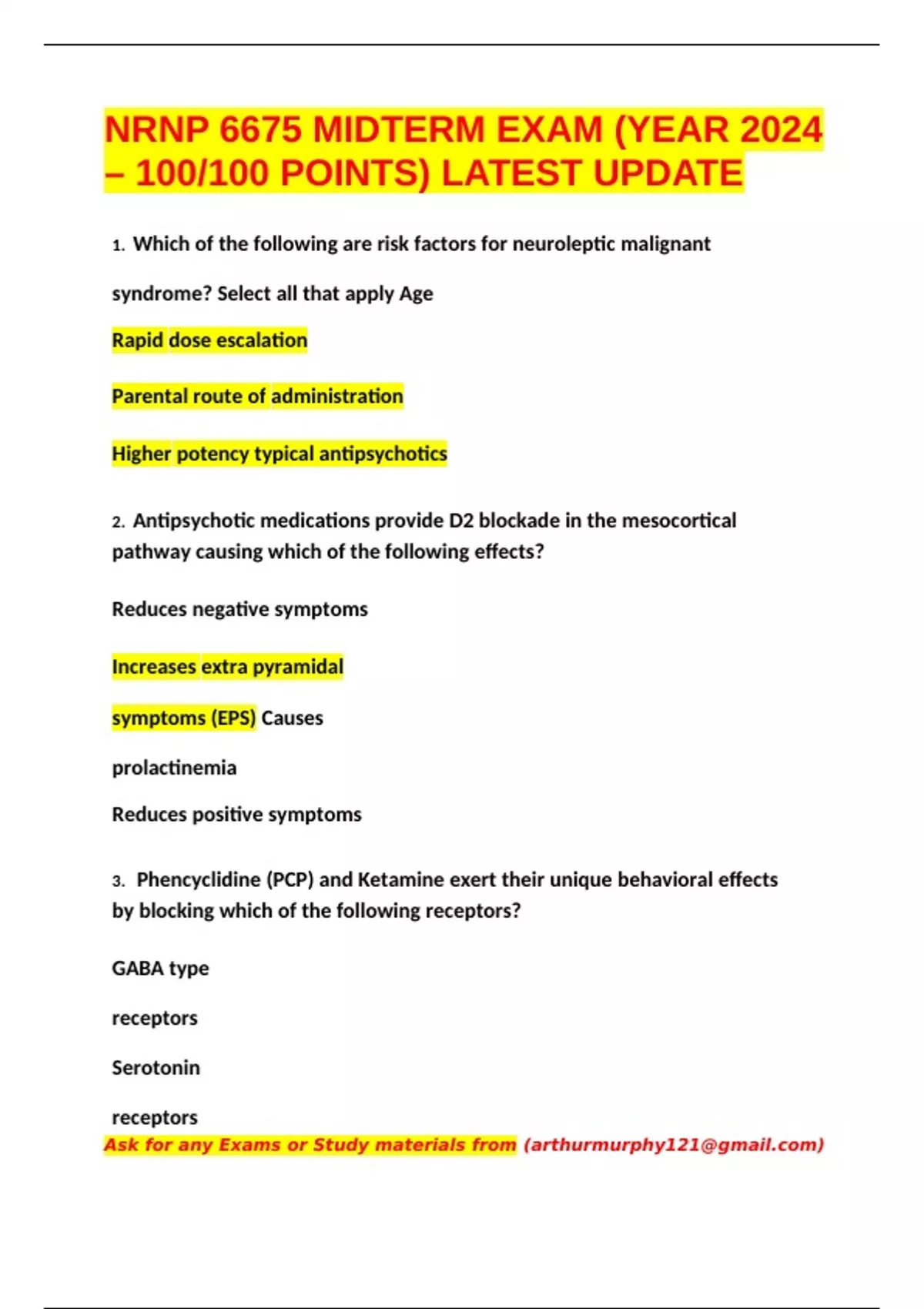 NRNP 6675 MIDTERM EXAM (YEAR 2024