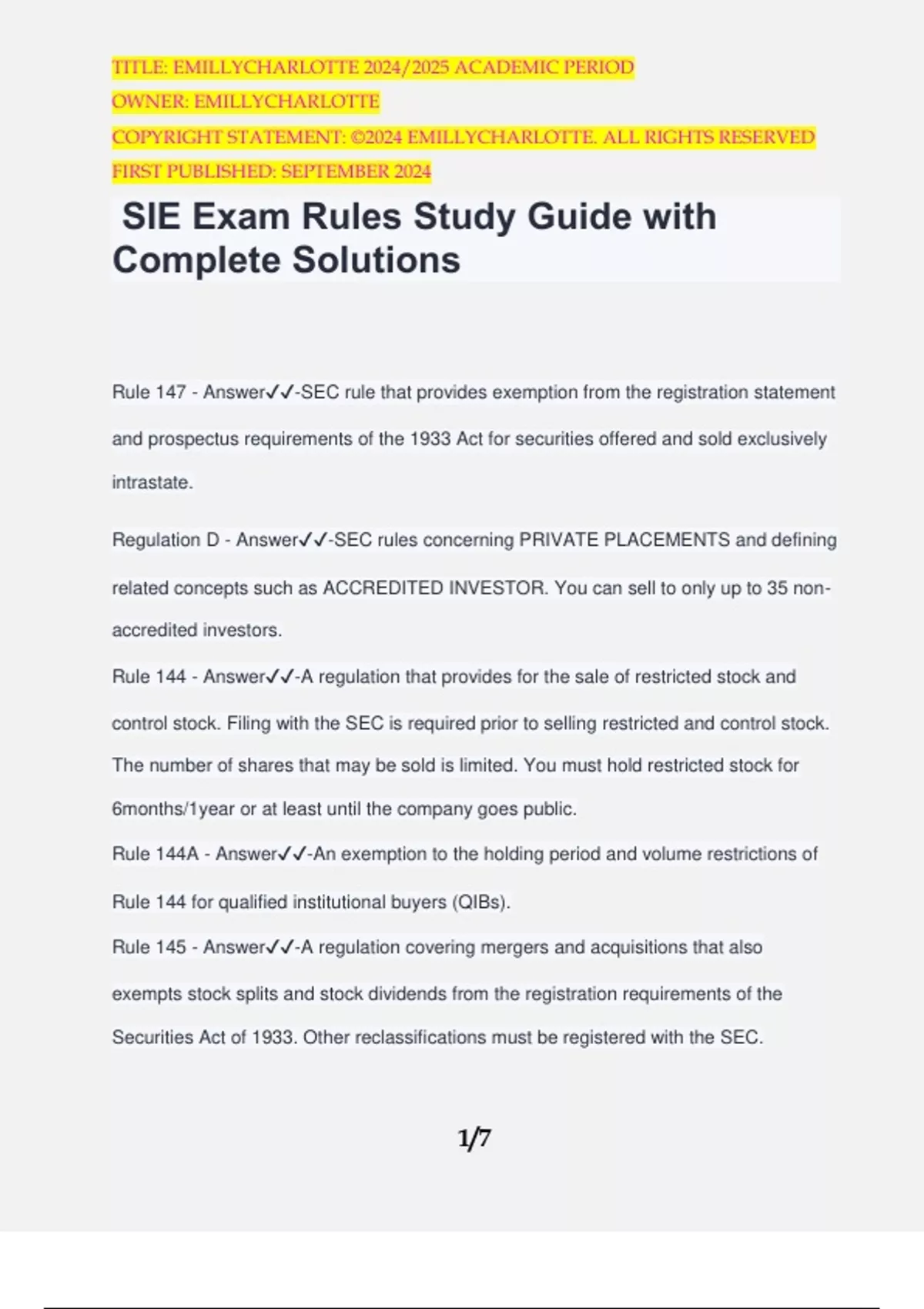SIE Exam Rules Study Guide with