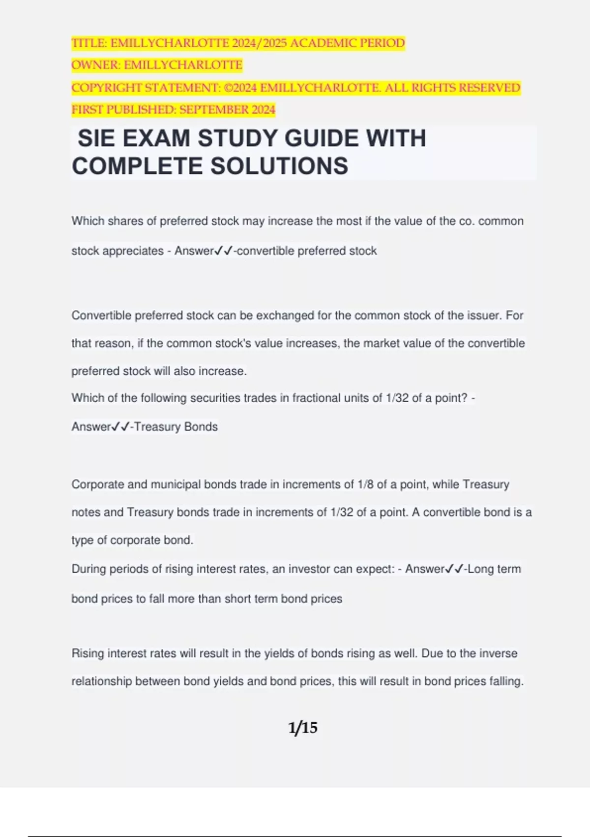 SIE EXAM STUDY GUIDE WITH