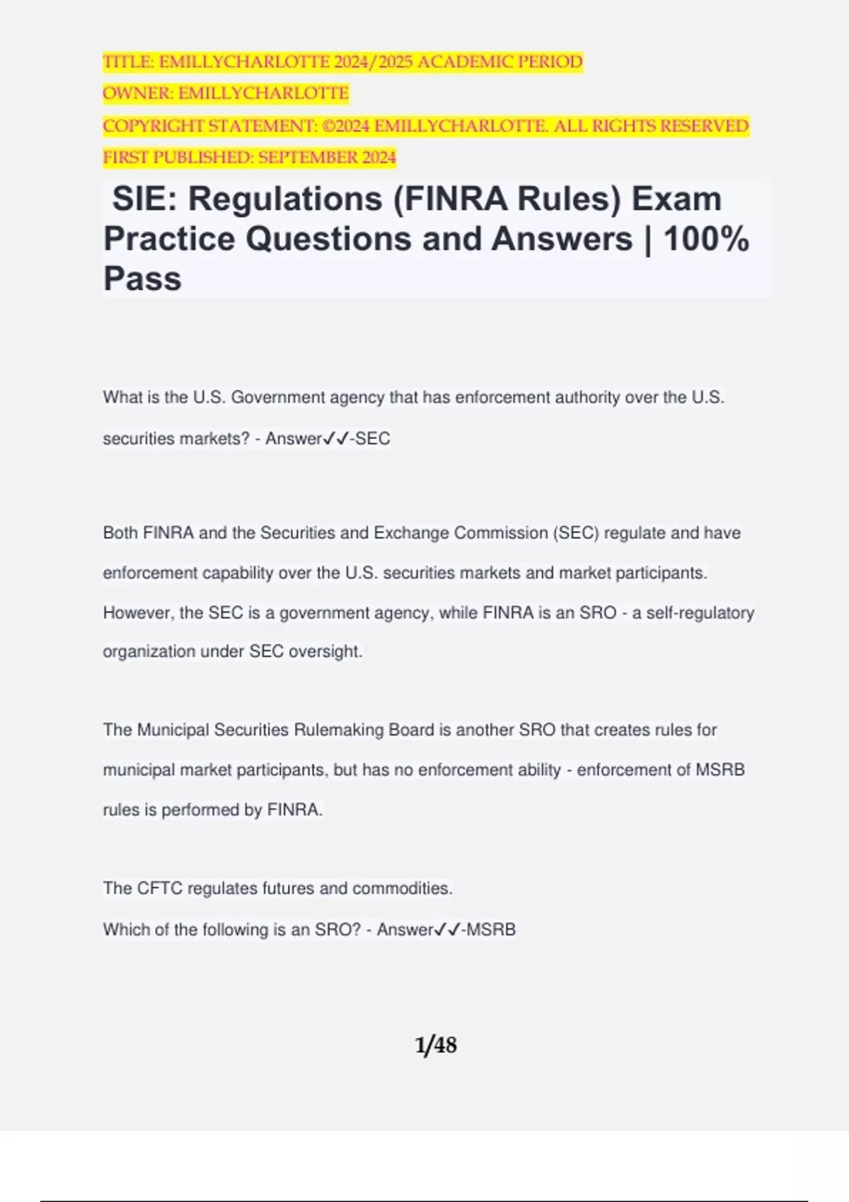 Both FINRA and the Securities and Exchange Commission (SEC) regulate and have