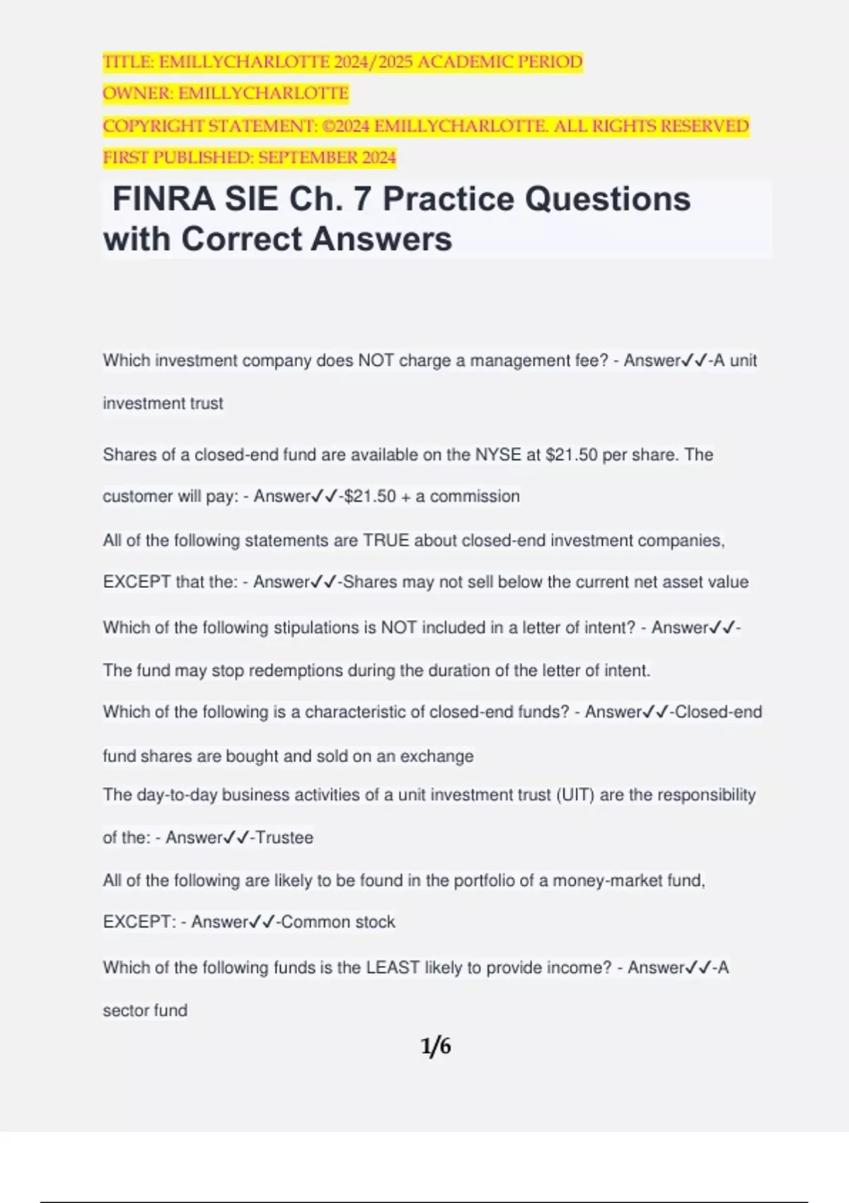 An investor in a mutual fund: - Answer✔️✔️-Owns shares which represent an interest in