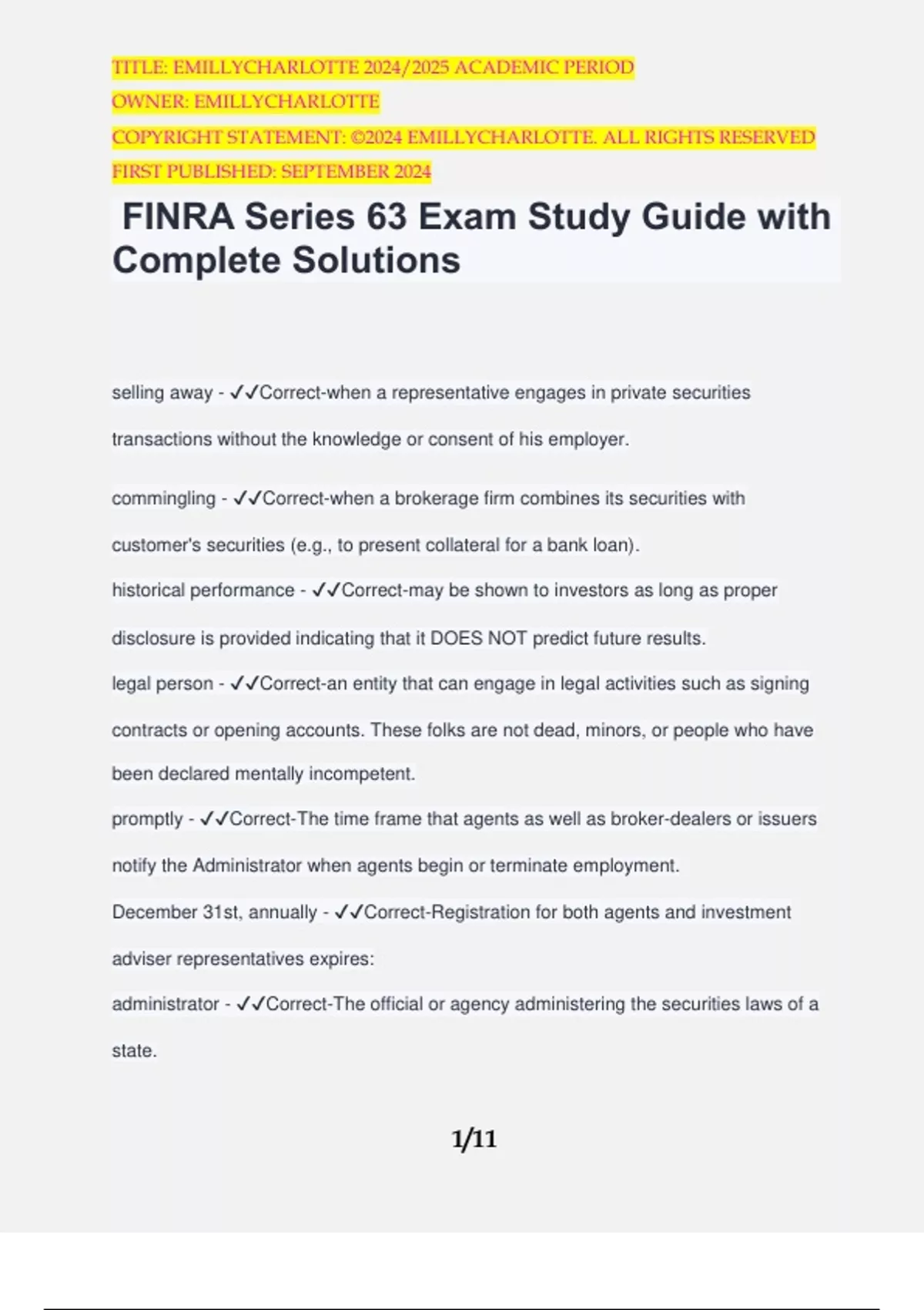 FINRA Series 63 Exam Study Guide with