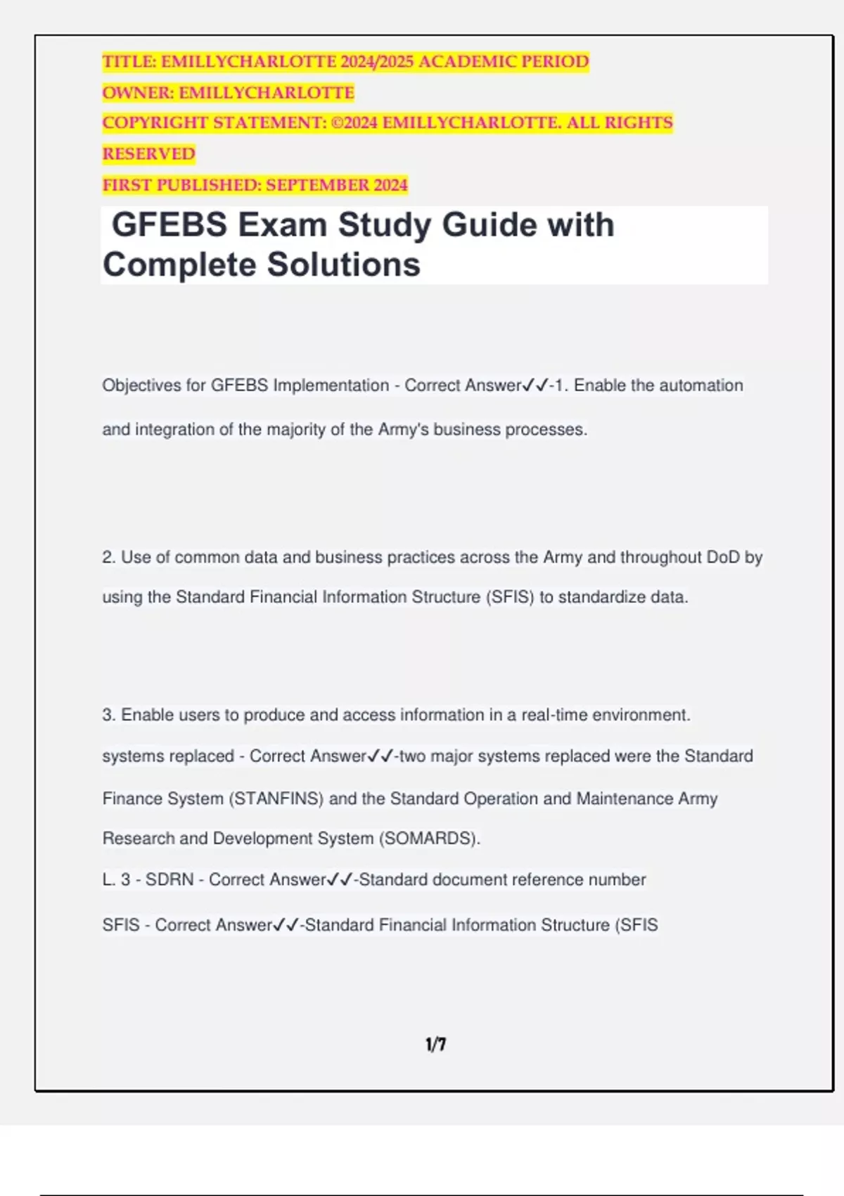 Objectives for GFEBS Implementation - Correct Answer✔️✔️-1. Enable the automation