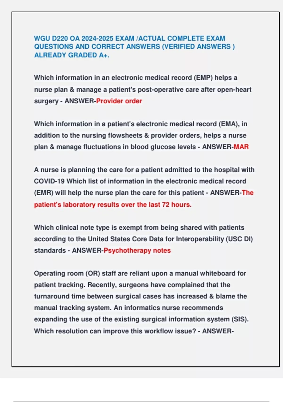 QUESTIONS AND CORRECT ANSWERS (VERIFIED ANSWERS )