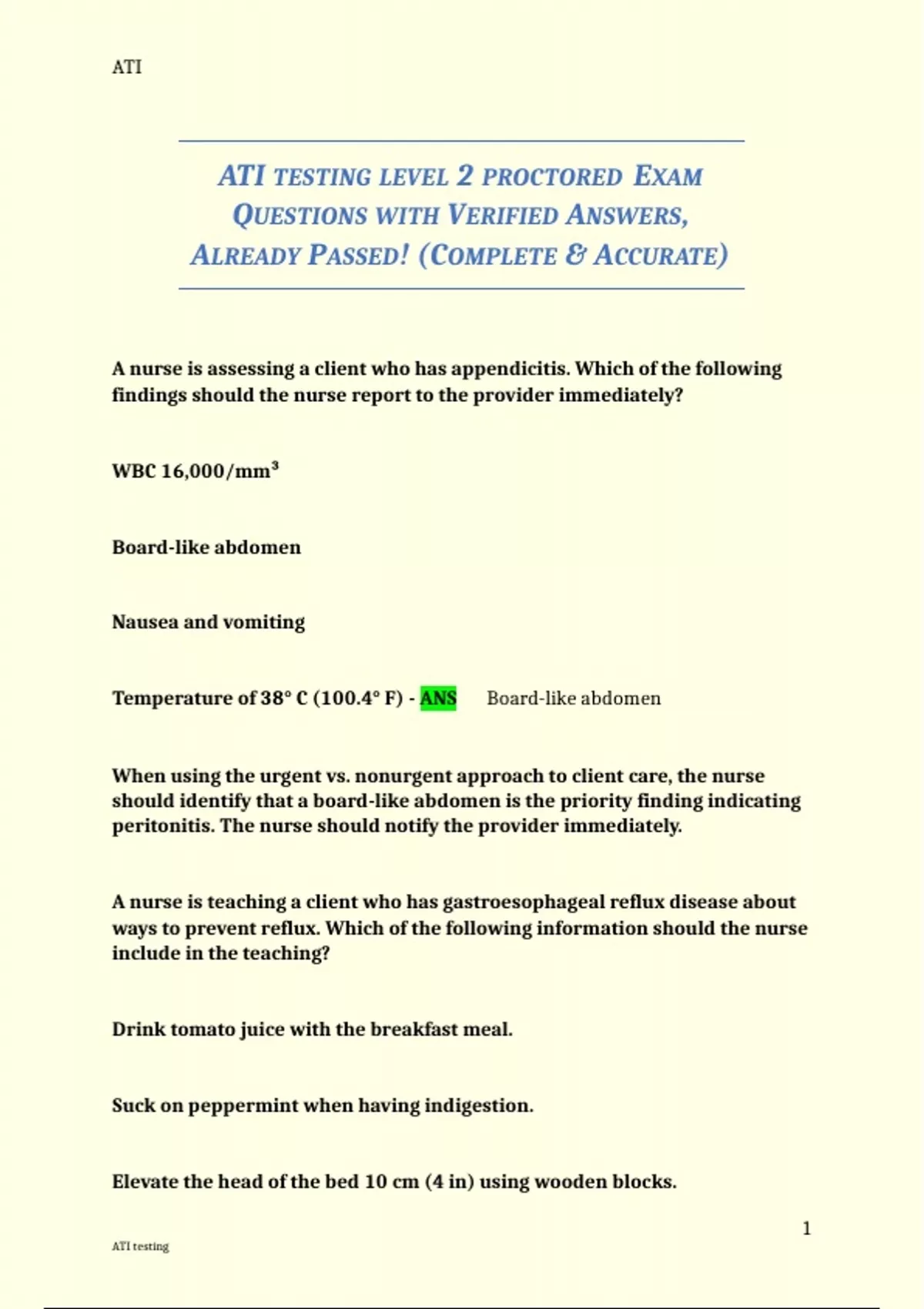ATI TESTING LEVEL 2 PROCTORED EXAM