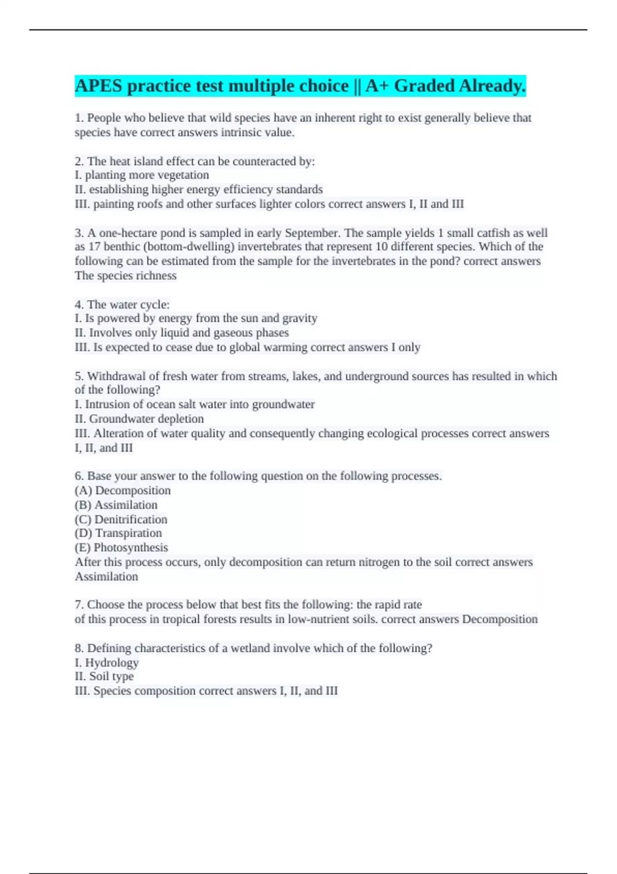 III. Alteration of water quality and consequently changing ecological processes correct answers
