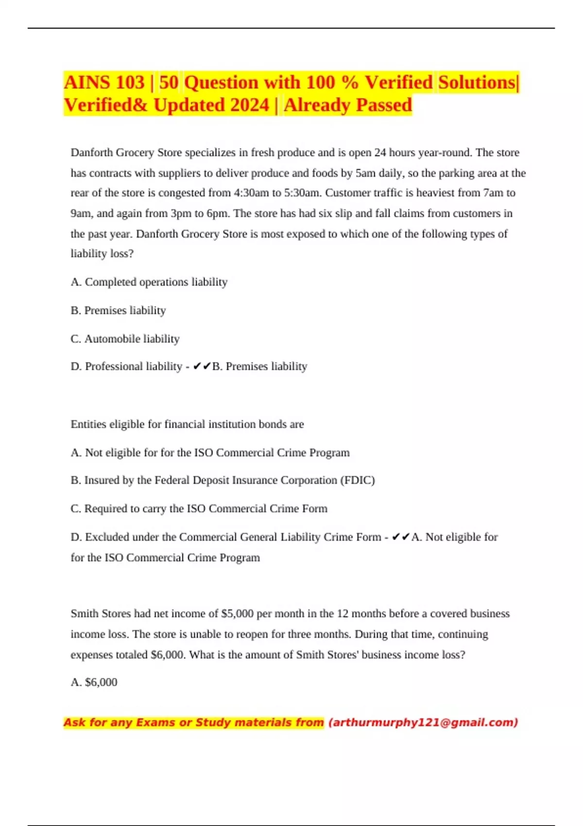 AINS 103 | 50 Question with 100 % Verified Solutions| Verified& Updated 2024 | Already Passed