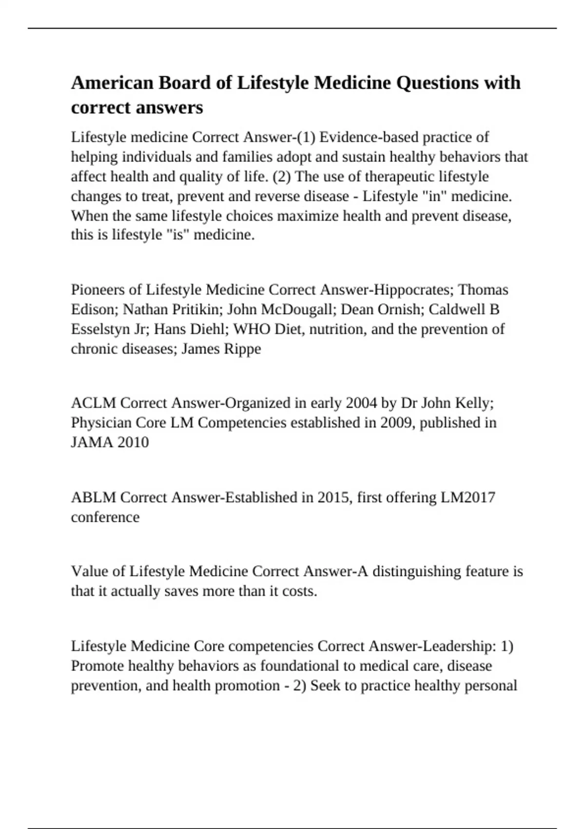 Value of Lifestyle Medicine Correct Answer-A distinguishing feature is