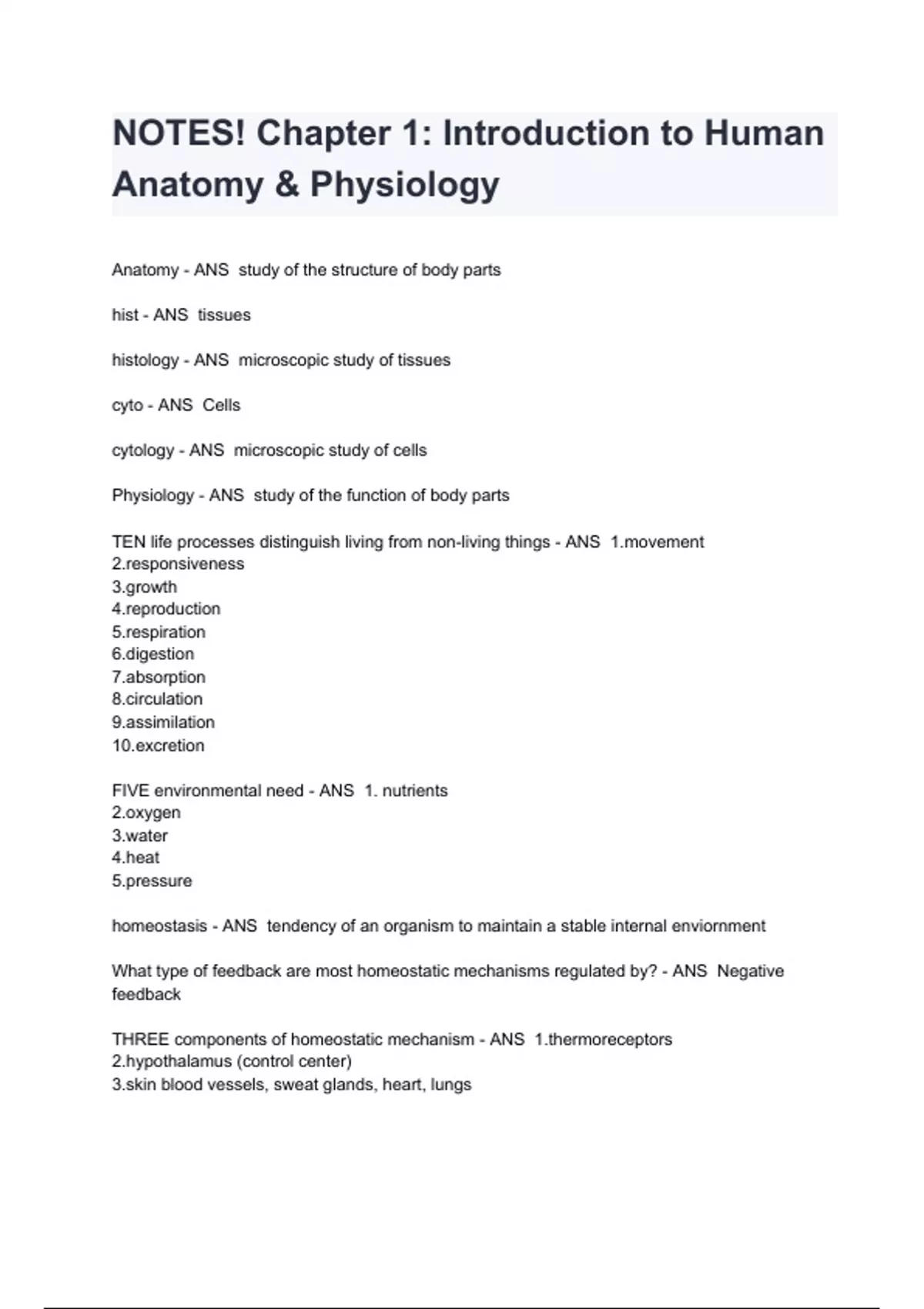 NOTES! Chapter 1: Introduction to Human Anatomy & Physiology for TEST BANK Exam 2024/2025 Questions With Completed & Correct Answers.