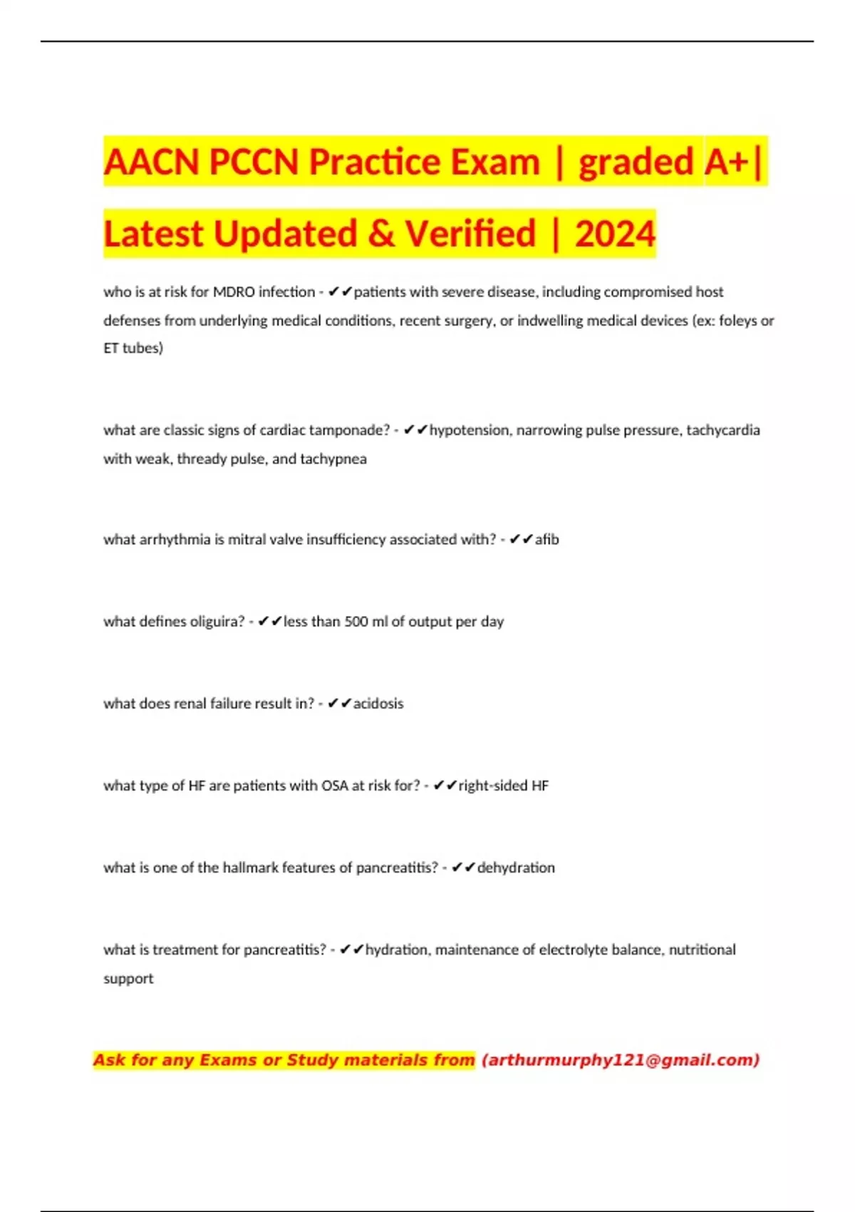 AACN PCCN Practice Exam | graded A+|Latest Updated & Verified | 2024