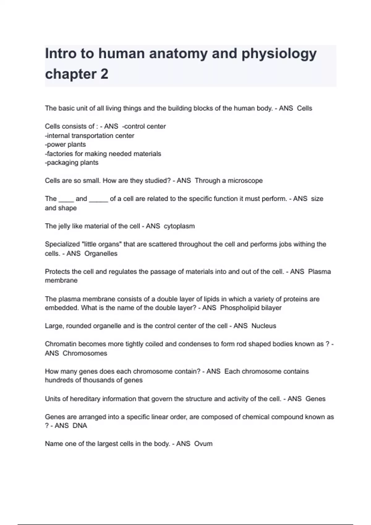 Intro to human anatomy and physiology chapter 2 Exam 2024/2025 Questions With Completed & Verified Solution.
