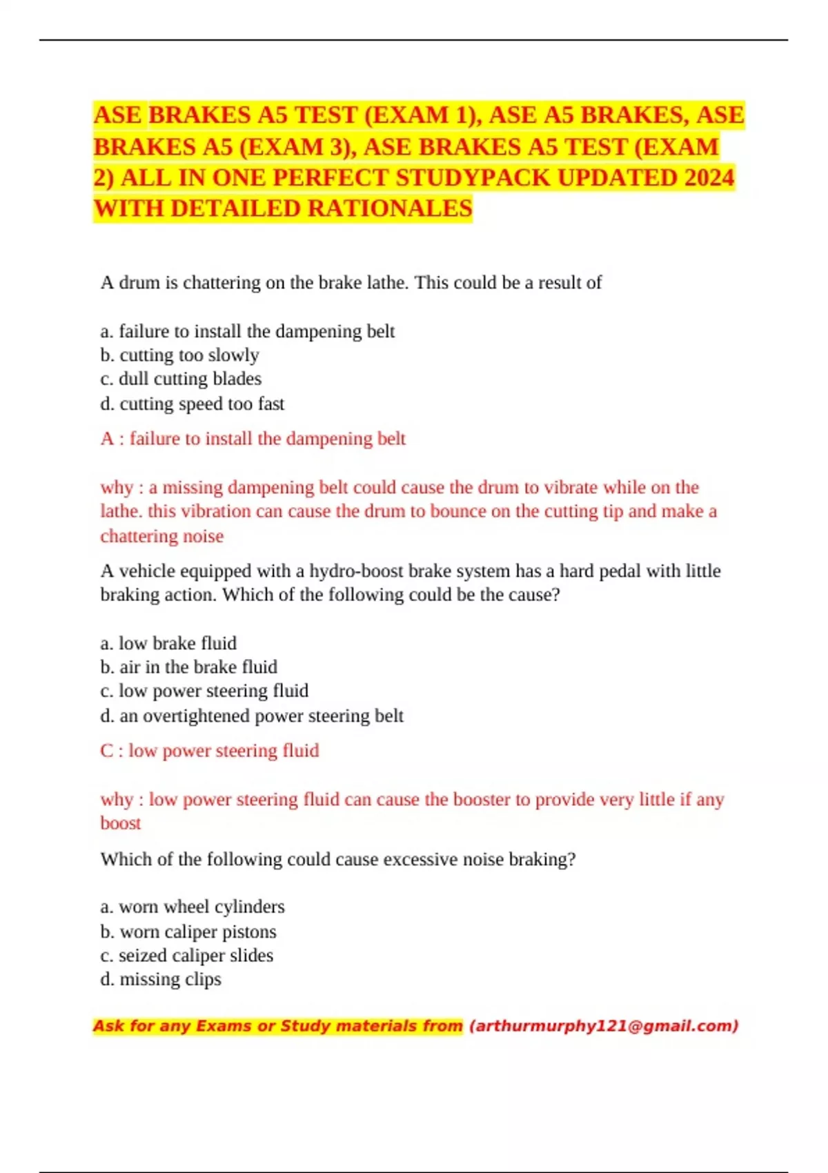 ASE BRAKES A5 TEST (EXAM 1), ASE A5 BRAKES, ASE