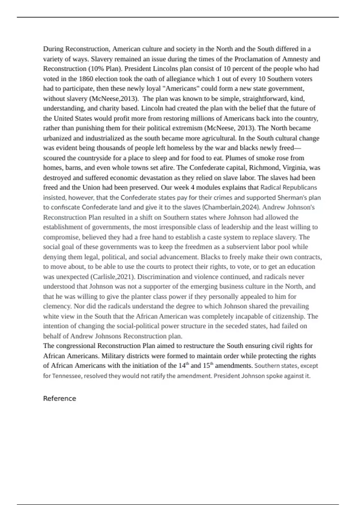 freed and the Union had been preserved. Our week 4 modules explains that Radical Republicans