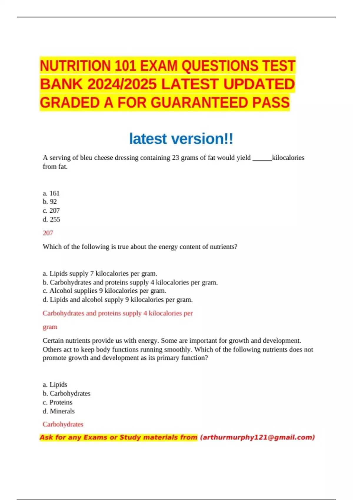 NUTRITION 101 EXAM QUESTIONS TEST