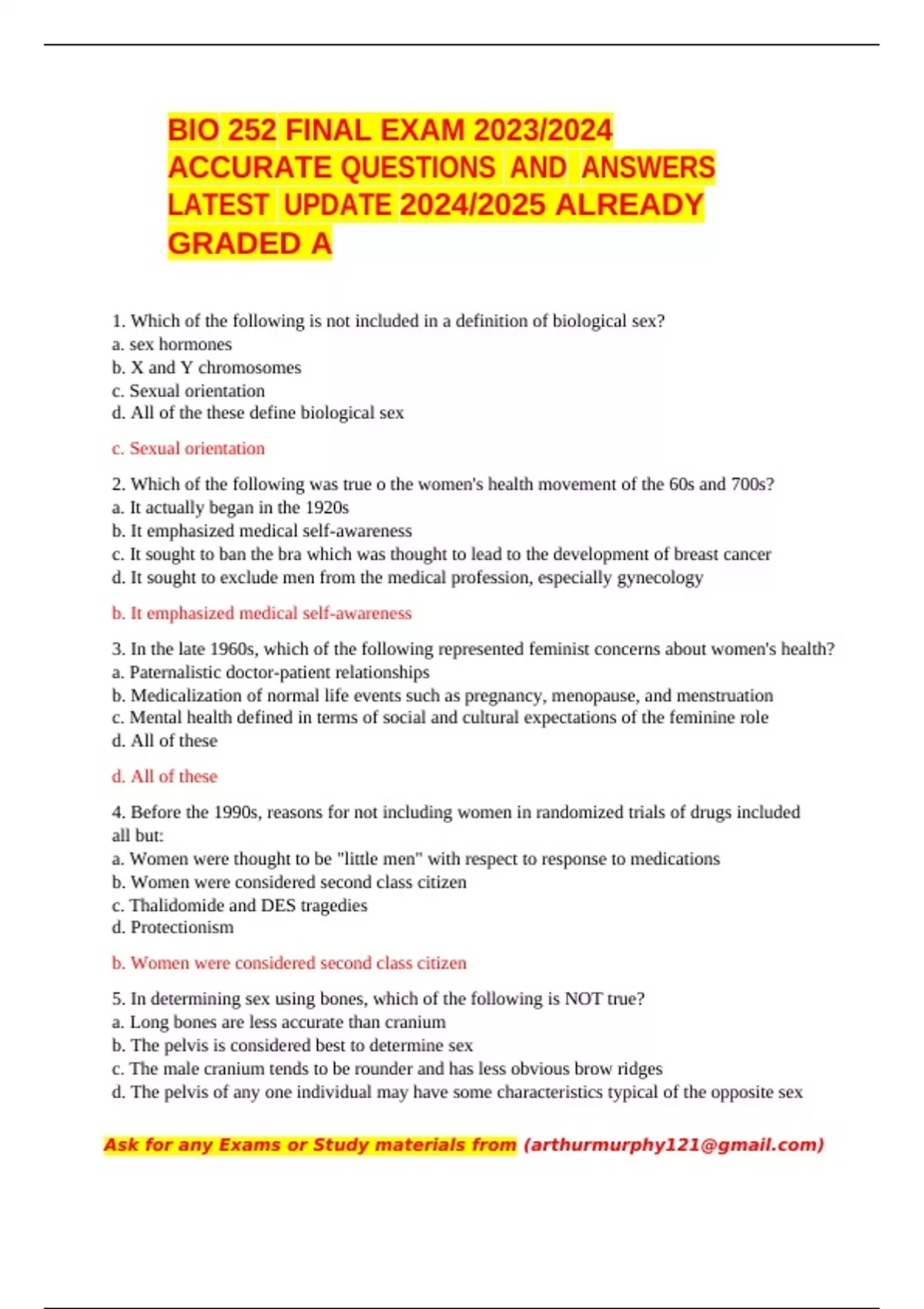 BIO 252 FINAL EXAM 2023/2024