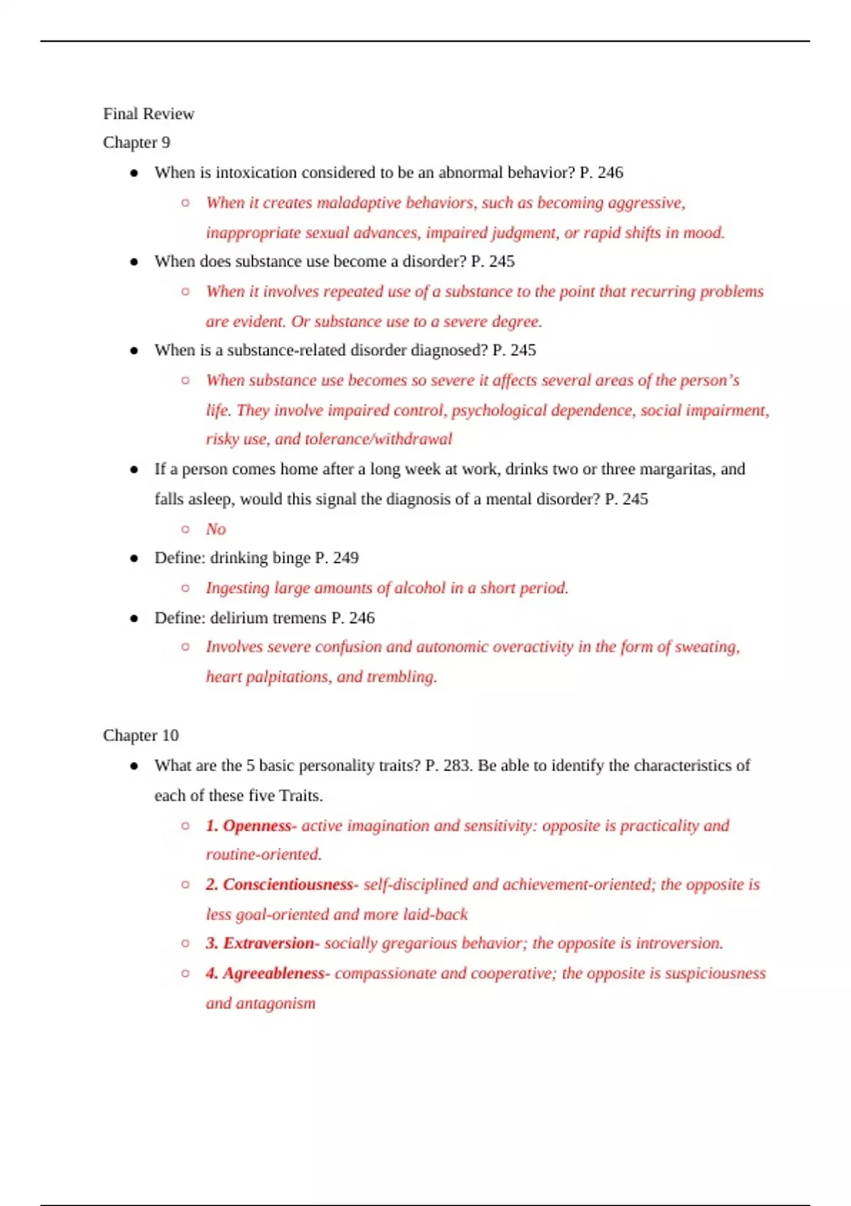 ● What are the 5 basic personality traits? P. 283. Be able to identify the characteristics of