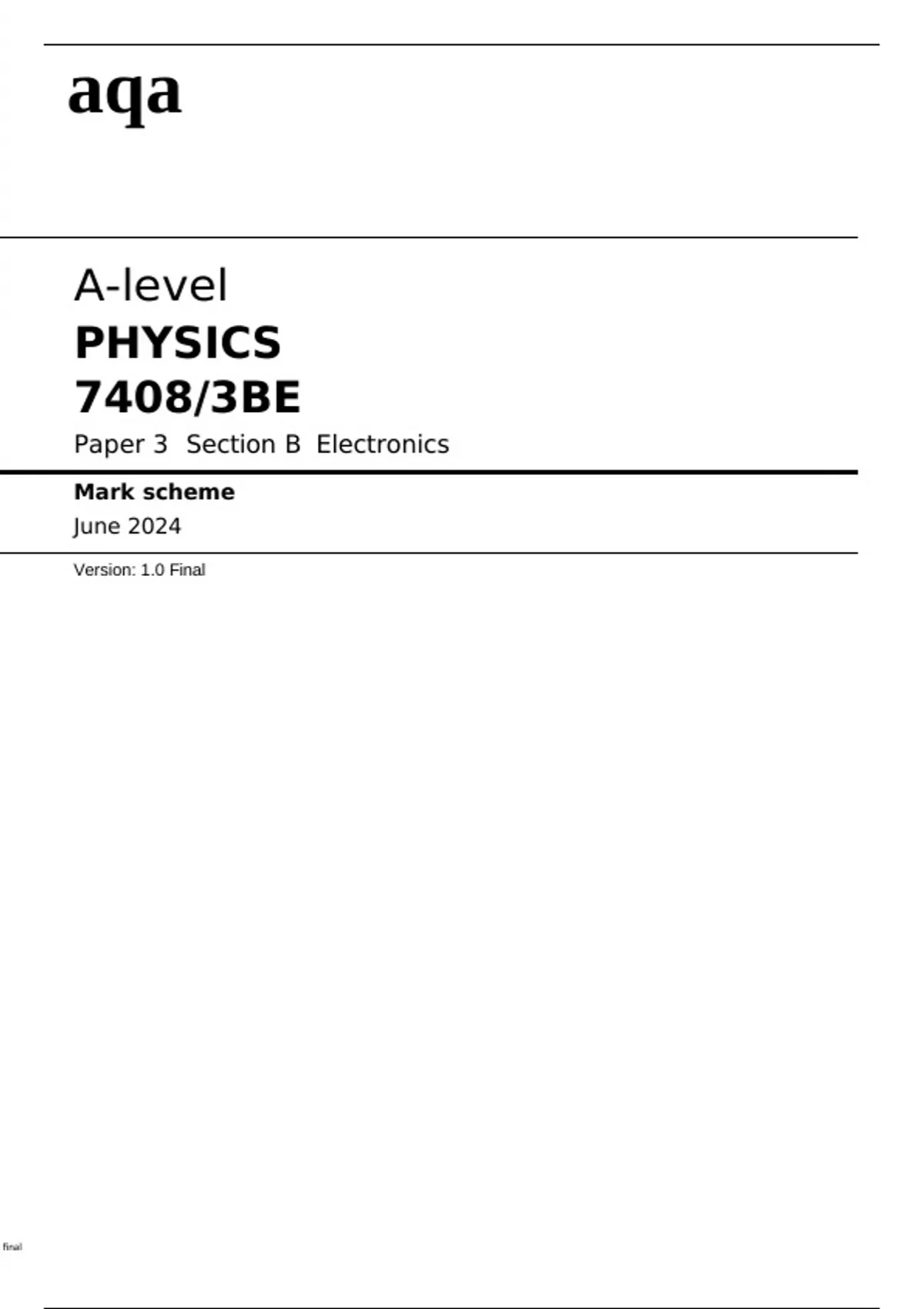 , Physics - Mark scheme instructions to examiners