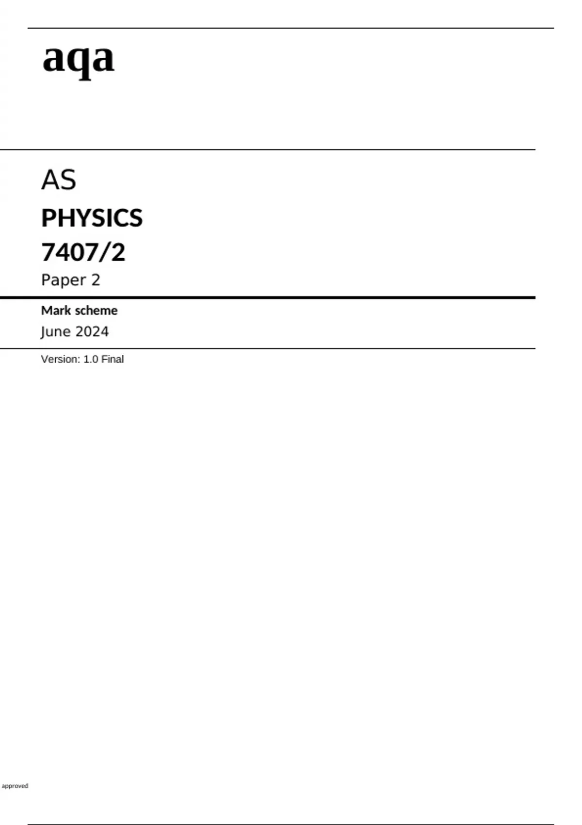 aqa AS PHYSICS (7407/2)Paper 2 OFFICIAL Mark Scheme June 2024