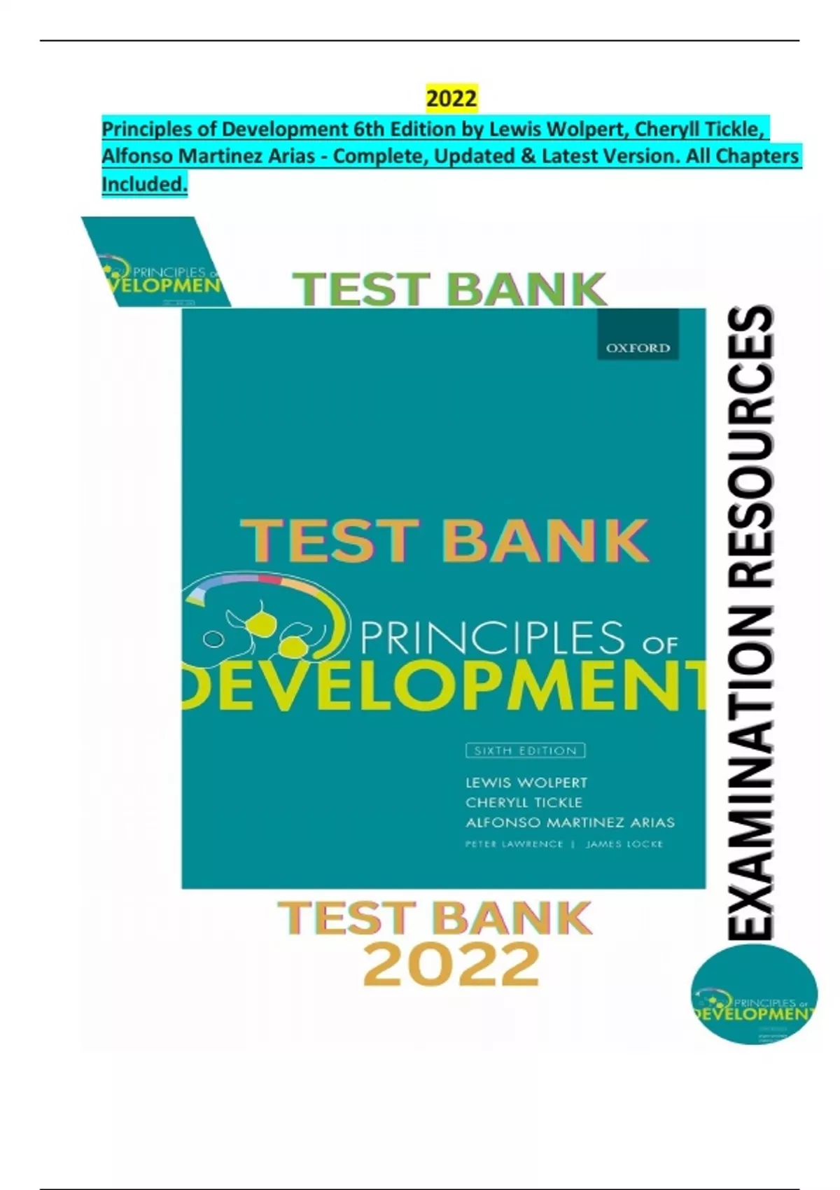 Test bank for Principles of Development 6th Edition by Lewis Wolpert, Cheryll Tickle,